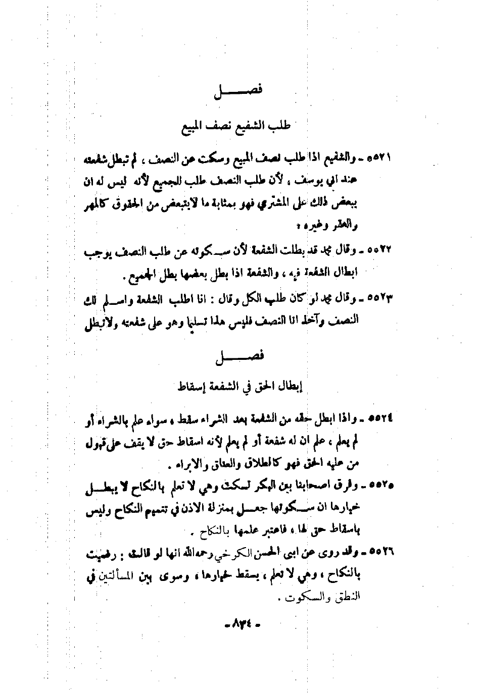 5522 - وقال محمد قد بطلت الشفعة لأن سكوته عن طلب النصف يوجب إبطال الشفعة فيه، والشفعة إذا بطل بعضها بطل الجميع.
