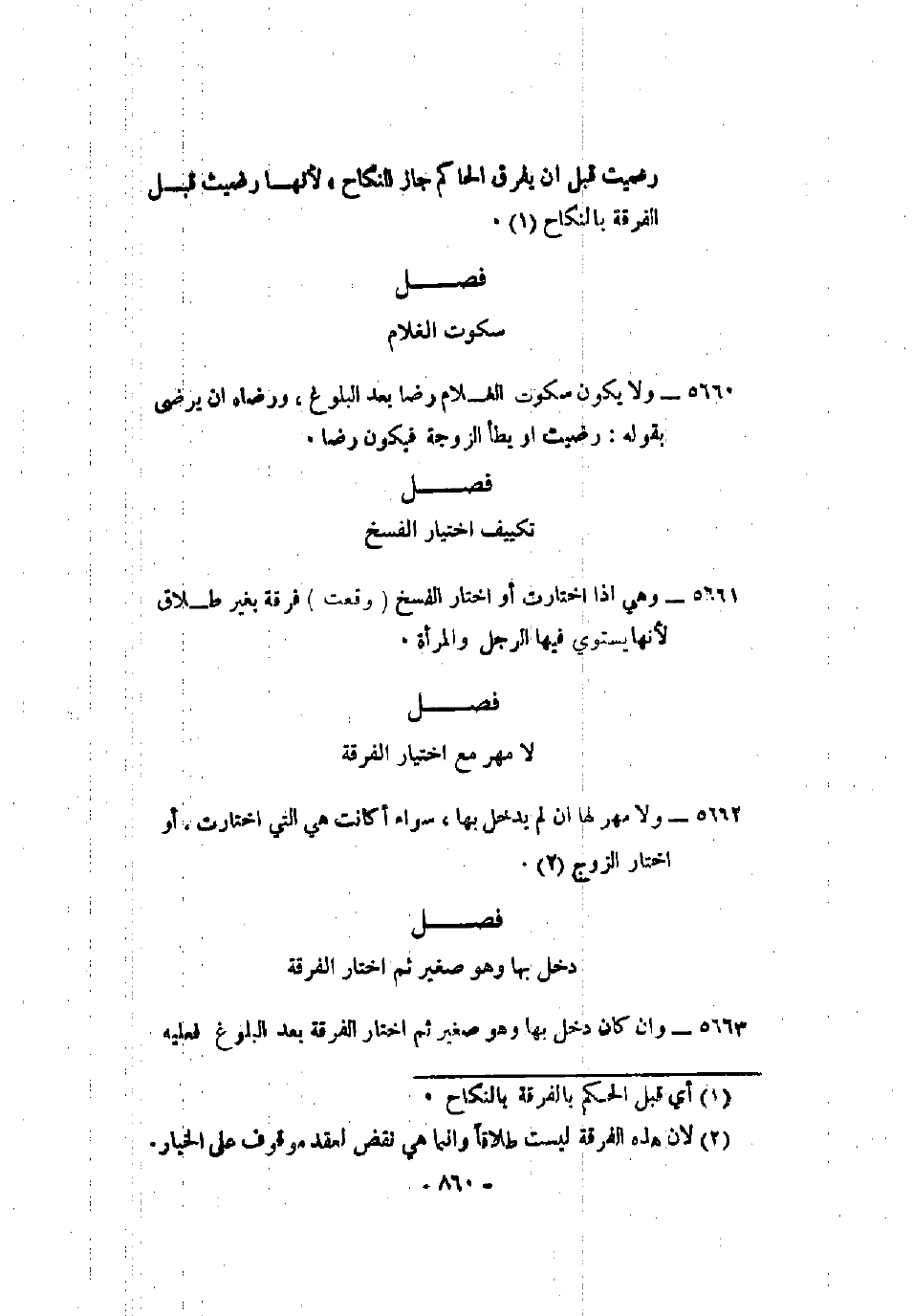 5662 - ولا مهر لها أن لم يدخل بها، سواء أكانت هي التي اختارت، أو اختار الزوج.
