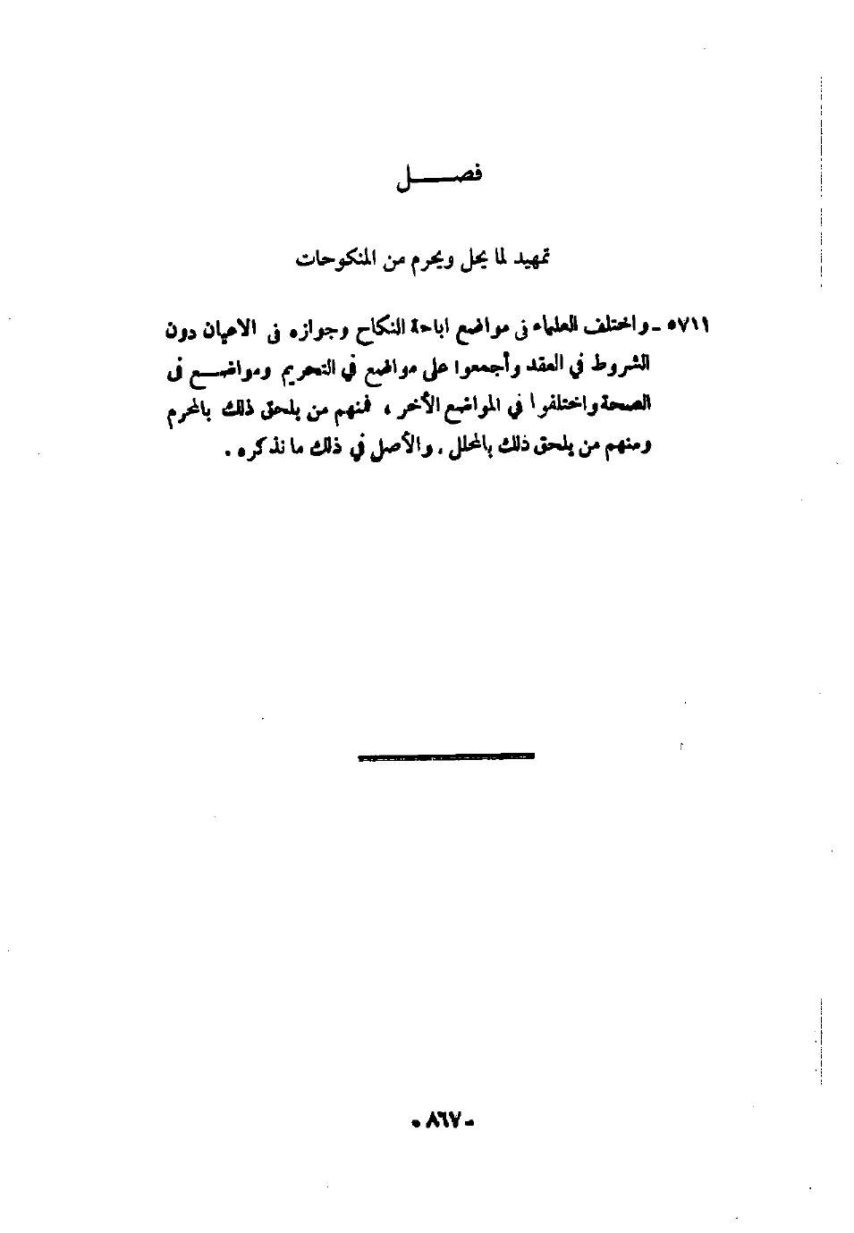 5711 - واختلف العلماء في مواضع إباحة النكاح وجوازه في الأعيان دون الشروط في العقد وأجمعوا على مواضع في التحريم ومواضع في الصحة واختلفوا في المواضع الأخرى، فمنهم من يلحق ذلك بالمحرم ومنهم من يلحق ذلك بالمحلل، والأصل في ذلك ما نذكره.