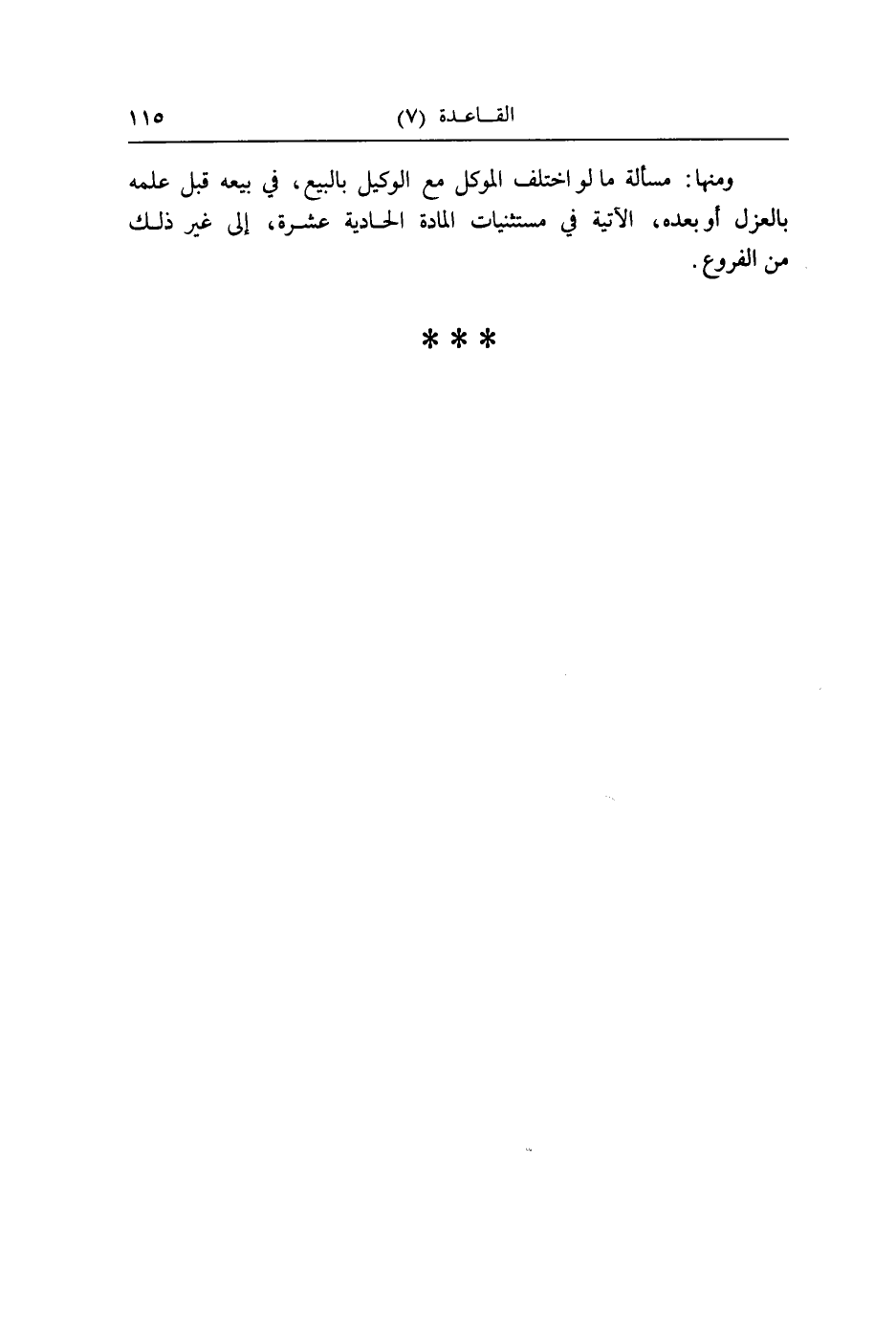 وَمِنْهَا: مَسْأَلَة مَا لَو اخْتلف الْمُوكل مَعَ الْوَكِيل بِالْبيعِ، فِي بَيْعه قبل علمه بِالْعَزْلِ أَو بعده، الْآتِيَة فِي مستثنيات الْمَادَّة الْحَادِيَة عشرَة، إِلَى غير ذَلِك من الْفُرُوع.