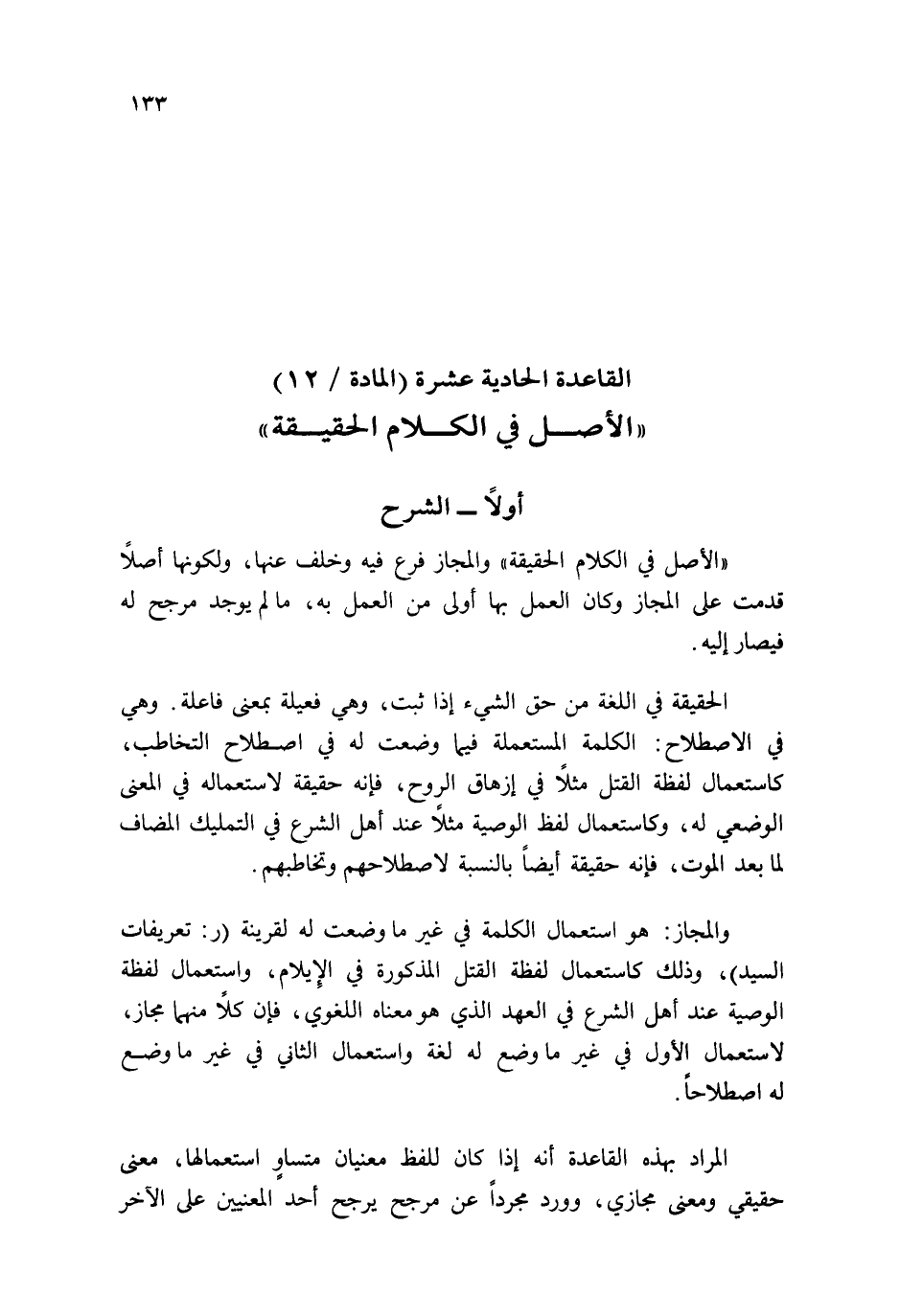 (الأَصْل فِي الْكَلَام الْحَقِيقَة)
