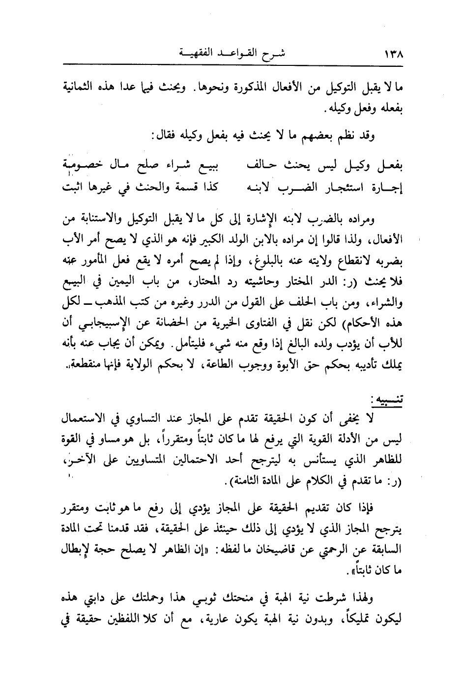 فَإِذا كَانَ تَقْدِيم الْحَقِيقَة على الْمجَاز يُؤَدِّي إِلَى رفع مَا هُوَ ثَابت ومتقرر يتَرَجَّح الْمجَاز الَّذِي لَا يُؤَدِّي إِلَى ذَلِك حِينَئِذٍ على الْحَقِيقَة، فقد قدمنَا تَحت الْمَادَّة السَّابِقَة عَن الرحمتي عَن قاضيخان مَا لَفظه: " إِن الظَّاهِر لَا يصلح حجَّة لإبطال مَا كَانَ ثَابتا ".