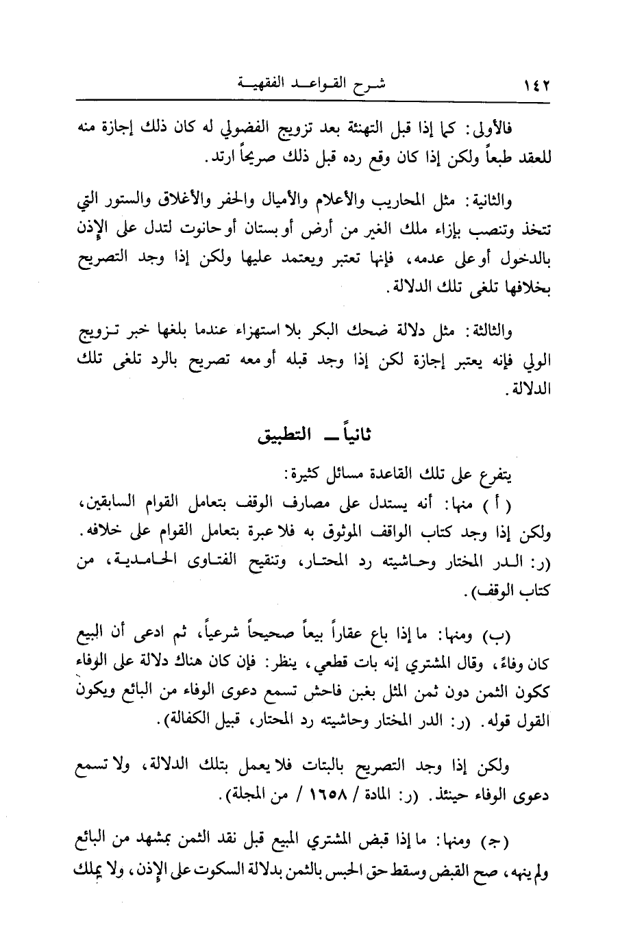 يتَفَرَّع على تِلْكَ الْقَاعِدَة مسَائِل كَثِيرَة: (أ) مِنْهَا: أَنه يسْتَدلّ على مصارف الْوَقْف بتعامل القوام السَّابِقين، وَلَكِن إِذا وجد كتاب الْوَاقِف الموثوق بِهِ فَلَا عِبْرَة بتعامل القوام على خِلَافه. (ر: الدّرّ الْمُخْتَار وحاشيته رد الْمُحْتَار، وتنقيح الْفَتَاوَى الحامدية، من كتاب الْوَقْف) .