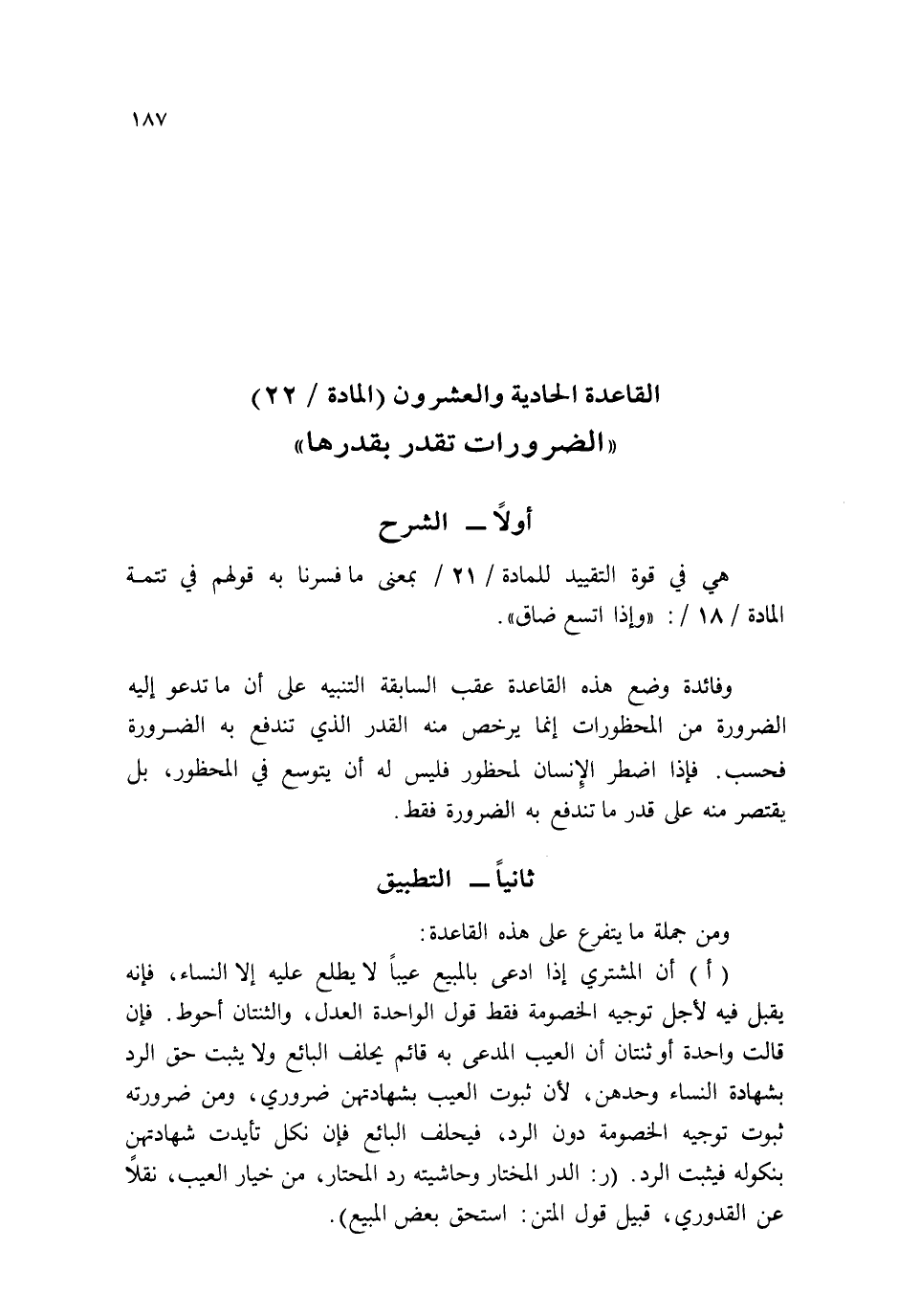 (الْقَاعِدَة الْحَادِيَة وَالْعشْرُونَ (الْمَادَّة / ٢٢))
