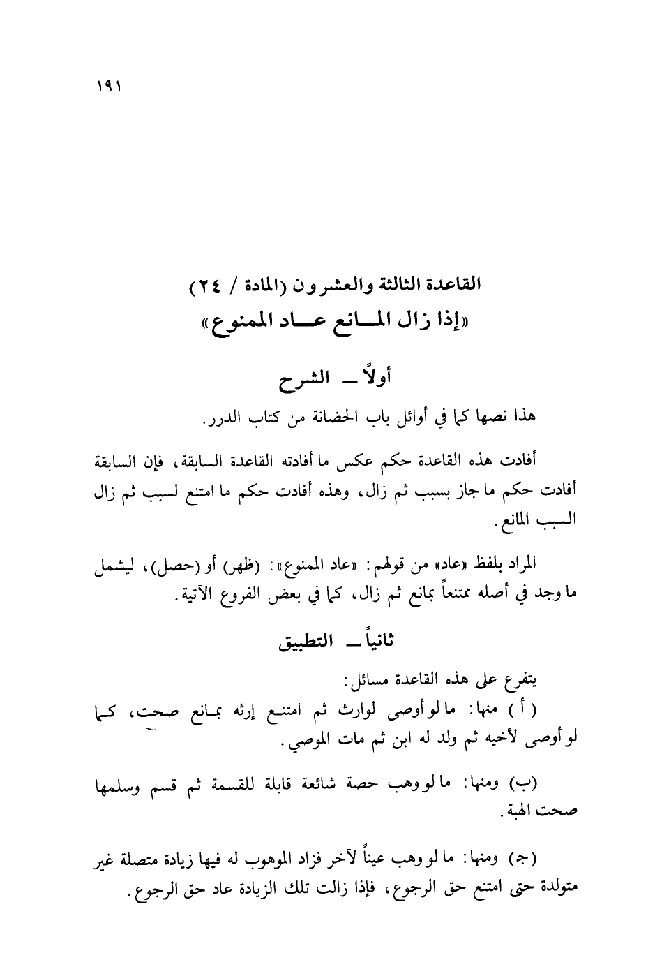 (الْقَاعِدَة الثَّالِثَة وَالْعشْرُونَ (الْمَادَّة / ٢٤))