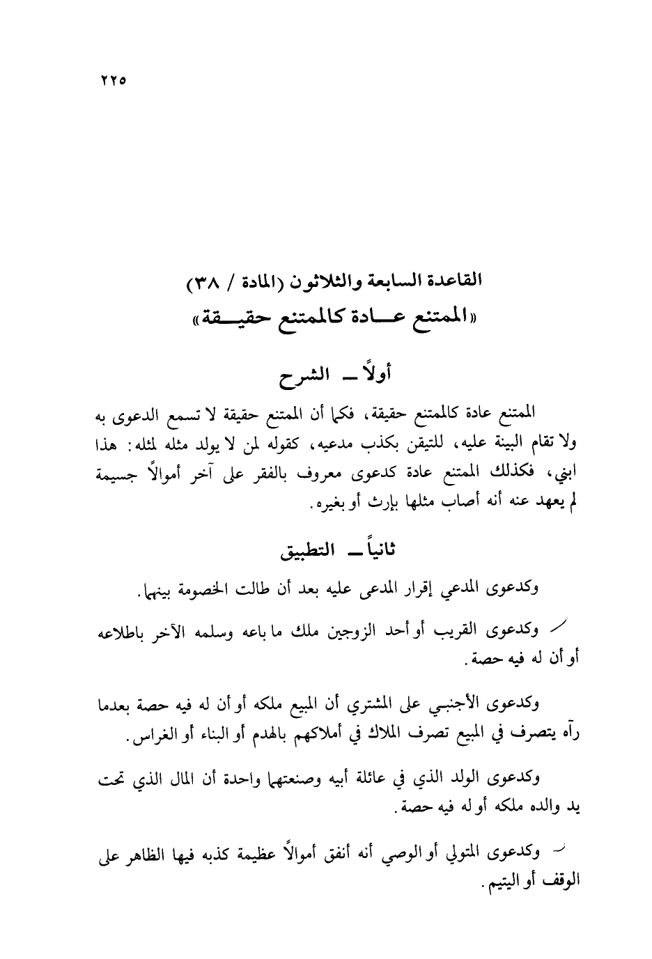 (الْقَاعِدَة السَّابِعَة وَالثَّلَاثُونَ (الْمَادَّة / ٣٨))