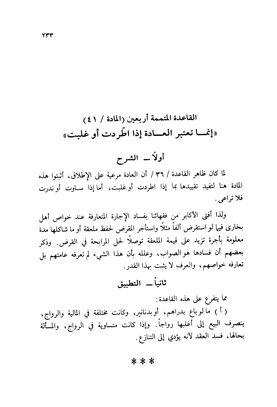 (" إِنَّمَا تعْتَبر الْعَادة إِذا اطردت أَو غلبت ")
