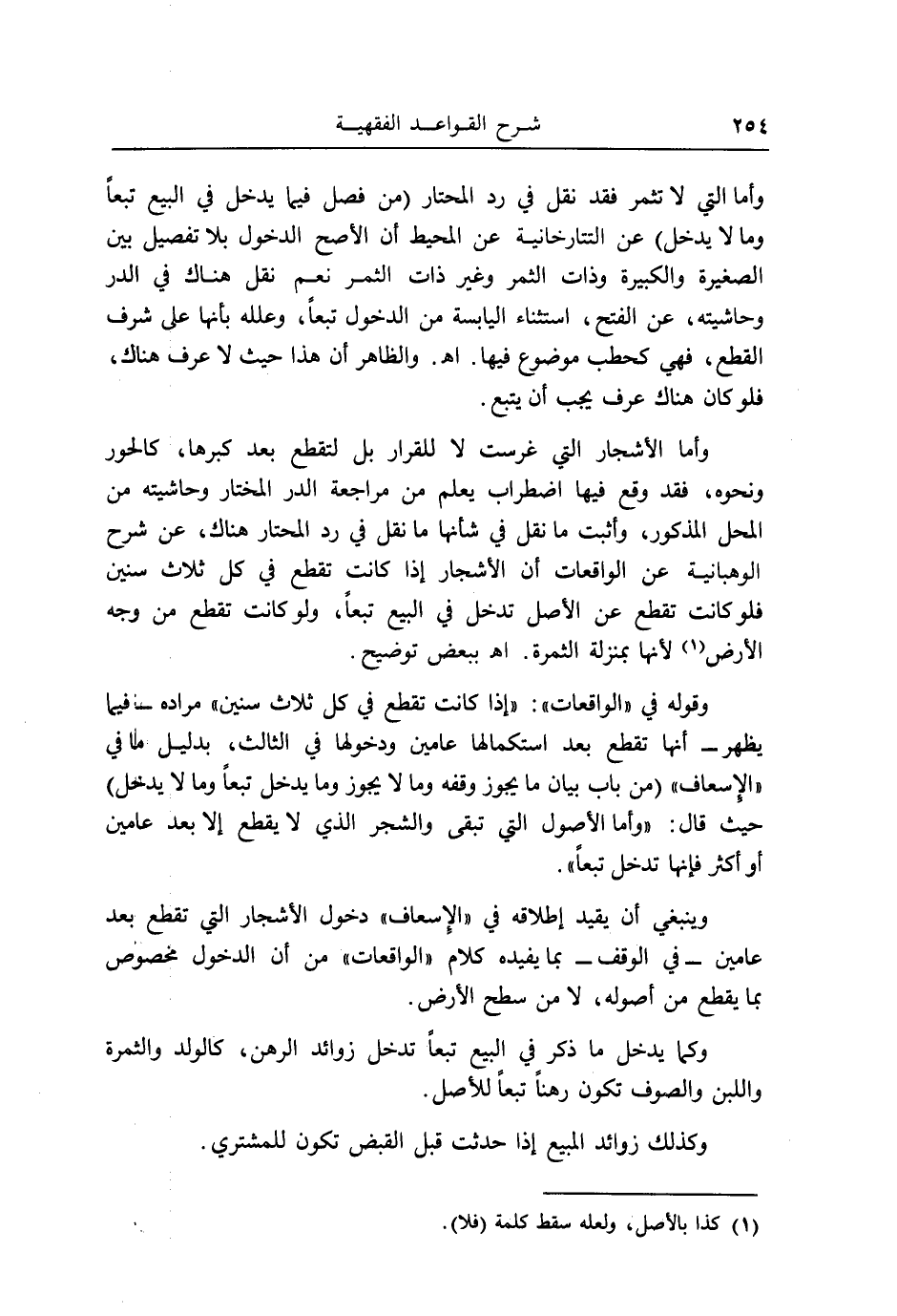 وَقَوله فِي " الْوَاقِعَات ": " إِذا كَانَت تقطع فِي كل ثَلَاث سِنِين " مُرَاده _ فِيمَا يظْهر _ أَنَّهَا تقطع بعد استكمالها عَاميْنِ ودخولها فِي الثَّالِث، بِدَلِيل مَا فِي " الْإِسْعَاف " (من بَاب بَيَان مَا يجوز وَقفه وَمَا لَا يجوز وَمَا يدْخل تبعا وَمَا لَا يدْخل) حَيْثُ قَالَ: " وَأما الْأُصُول الَّتِي تبقى وَالشَّجر الَّذِي لَا يقطع إِلَّا بعد عَاميْنِ أَو أَكثر فَإِنَّهَا تدخل تبعا ".