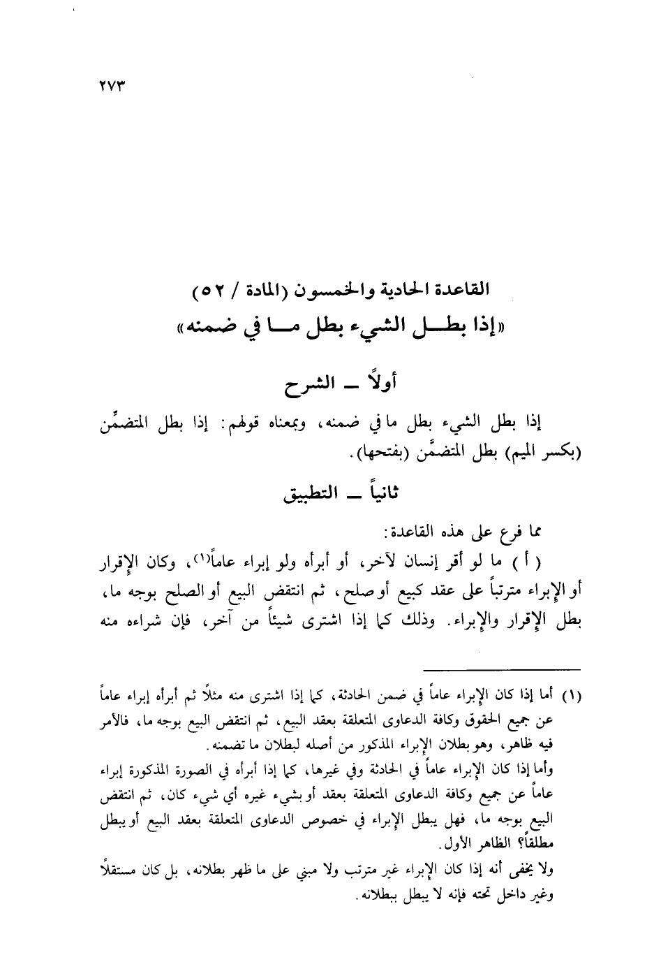 (الْقَاعِدَة الْحَادِيَة وَالْخَمْسُونَ (الْمَادَّة / ٥٢))