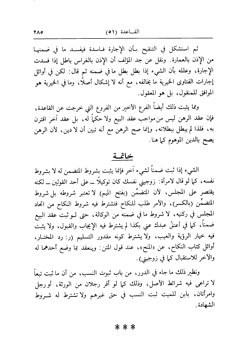 وَمِمَّا يثبت ذَلِك أَيْضا الْفَرْع الْأَخير من الْفُرُوع الَّتِي خرجت عَن الْقَاعِدَة، فَإِن عقد الرَّهْن لَيْسَ من مواجب عقد البيع وَلَا حكما لَهُ، بل عقد آخر اقْترن بِهِ، فَلِذَا لم يبطل بِبُطْلَانِهِ، وَإِنَّمَا صَحَّ الرَّهْن مَعَ أَنه تبين أَن لَا دين، لِأَن الرَّهْن يَصح بِالدّينِ الموهوم كَمَا هُنَا.