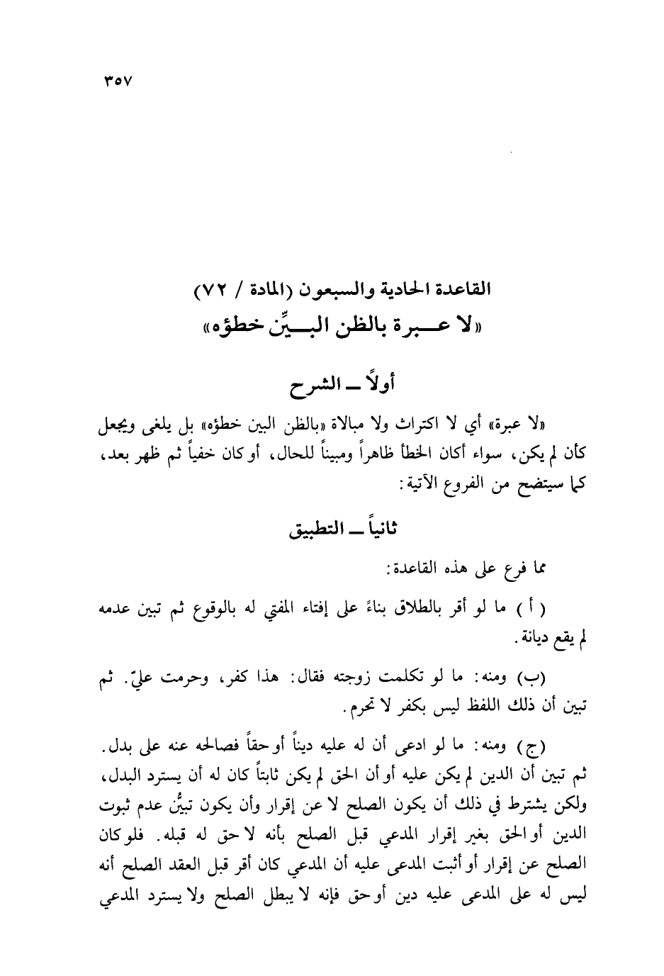 (الْقَاعِدَة الْحَادِيَة وَالسَّبْعُونَ (الْمَادَّة / ٧٢))