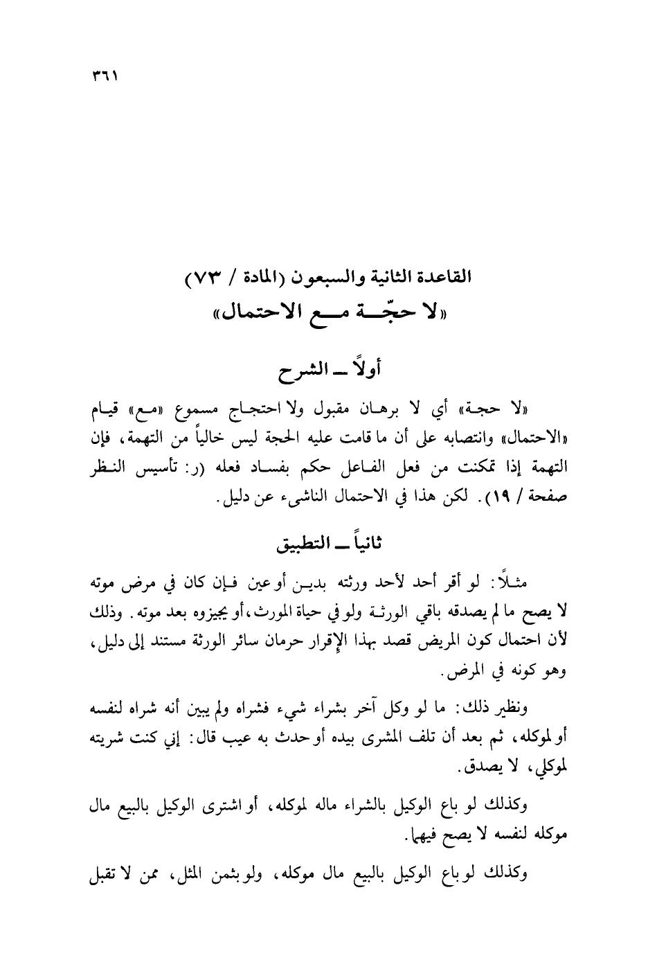 (الْقَاعِدَة الثَّانِيَة وَالسَّبْعُونَ (الْمَادَّة / ٧٣))