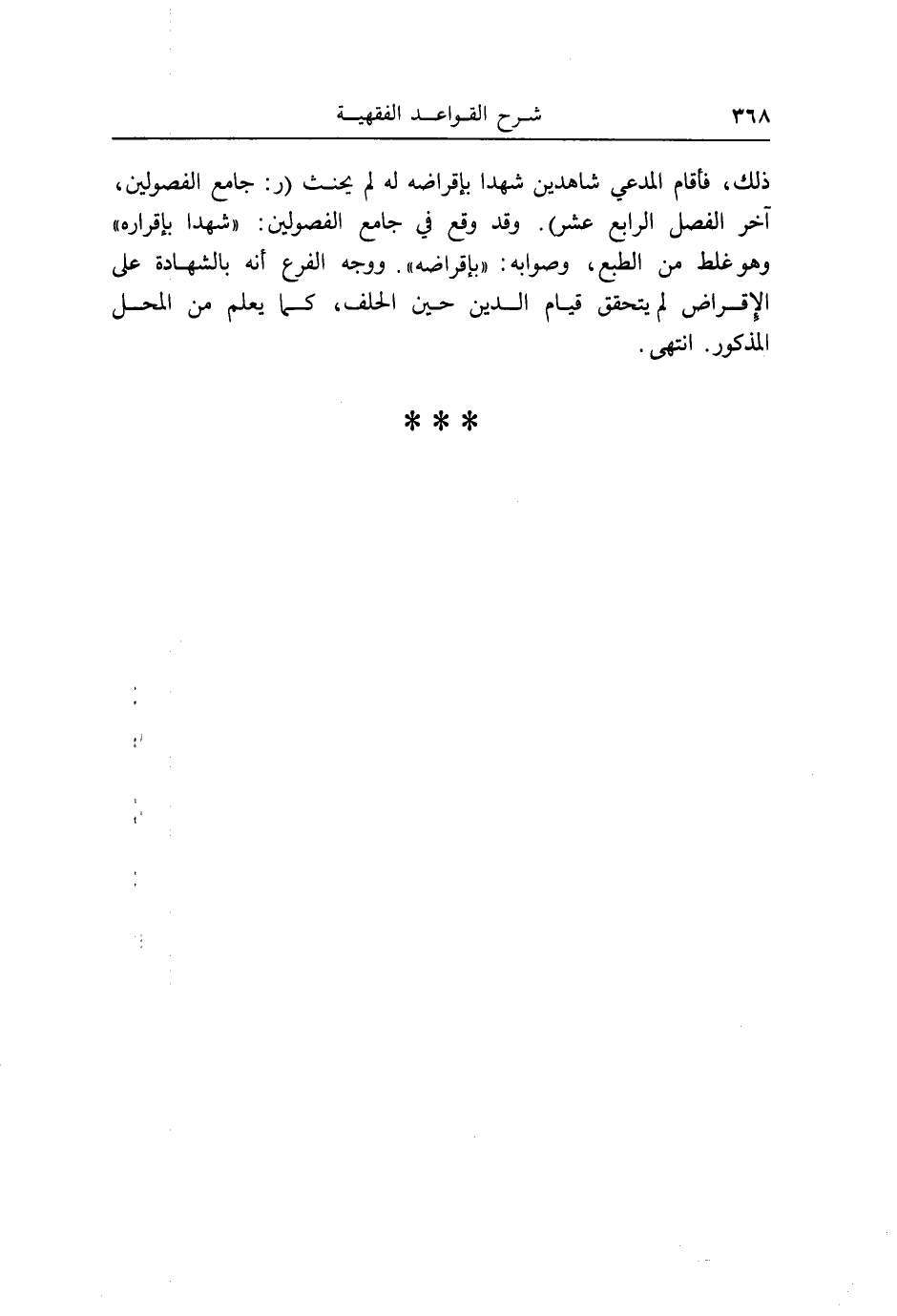 ذَلِك، فَأَقَامَ الْمُدَّعِي شَاهِدين شَهدا بإقراضه لَهُ لم يَحْنَث (ر: جَامع الْفُصُولَيْنِ، آخر الْفَصْل الرَّابِع عشر) . وَقد وَقع فِي جَامع الْفُصُولَيْنِ: " شَهدا بِإِقْرَارِهِ " وَهُوَ غلط مَعَ الطَّبْع، وَصَوَابه: " بإقراضه ". وَوجه الْفَرْع أَنه بِالشَّهَادَةِ على الْإِقْرَاض لم يتَحَقَّق قيام الدّين حِين الْحلف، كَمَا يعلم من الْمحل الْمَذْكُور. انْتهى.