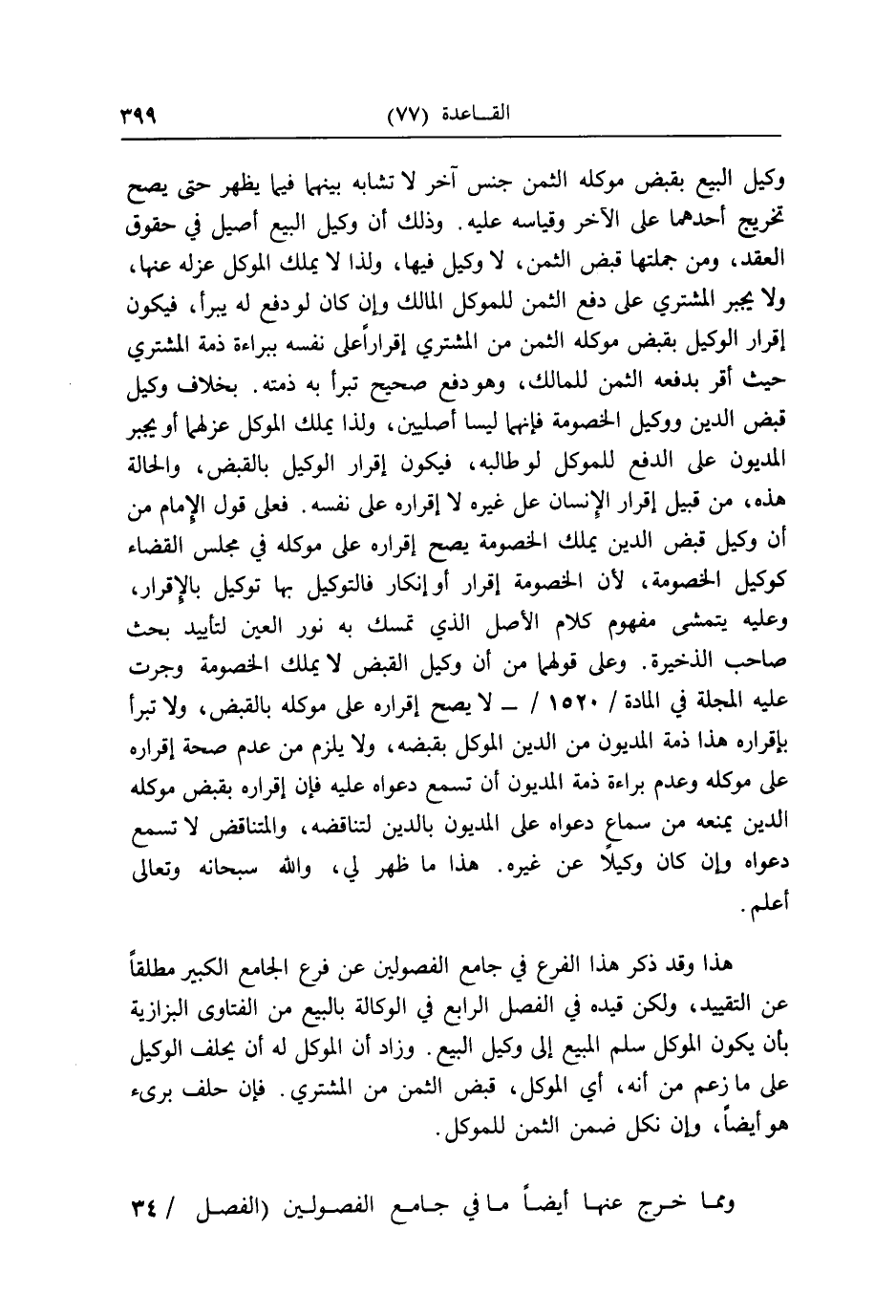 وَمِمَّا خرج عَنْهَا أَيْضا مَا فِي جَامع الْفُصُولَيْنِ (الْفَصْل / ٣٤