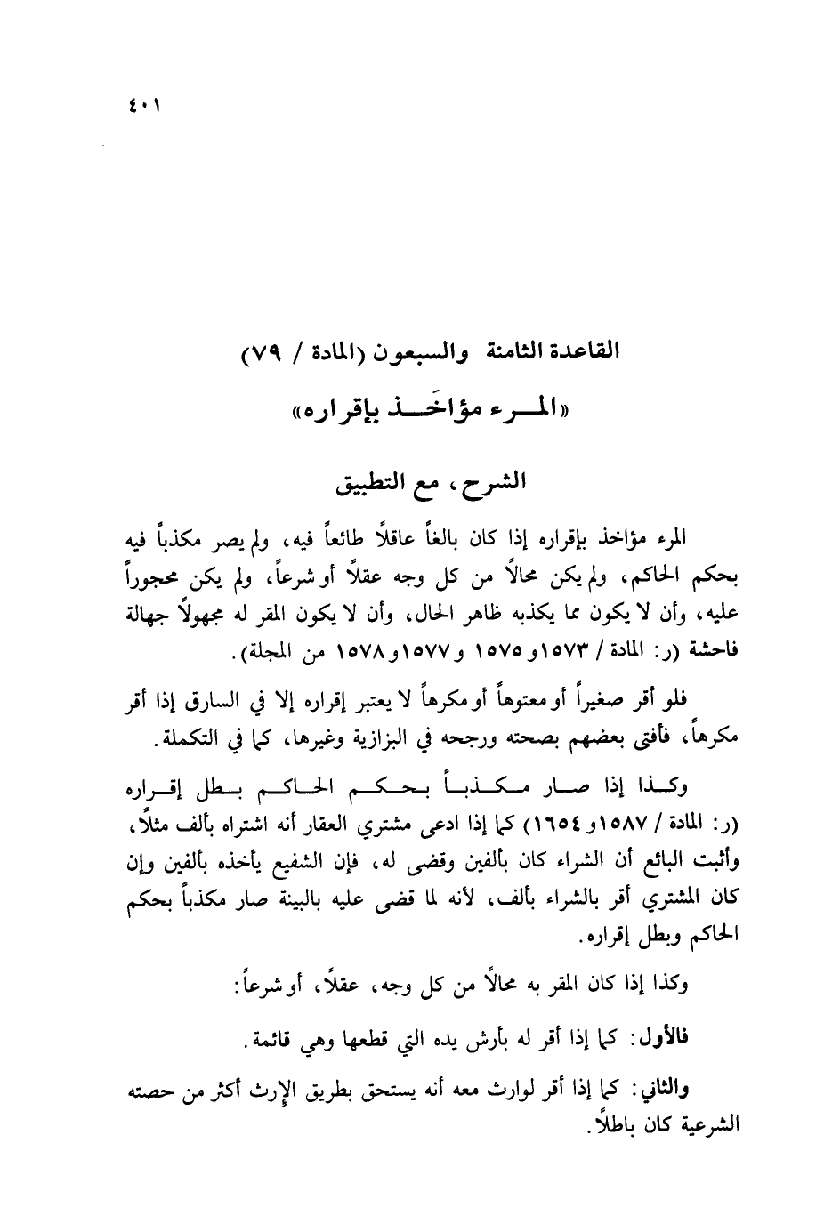 (الْقَاعِدَة الثَّامِنَة وَالسَّبْعُونَ (الْمَادَّة / ٧٩))