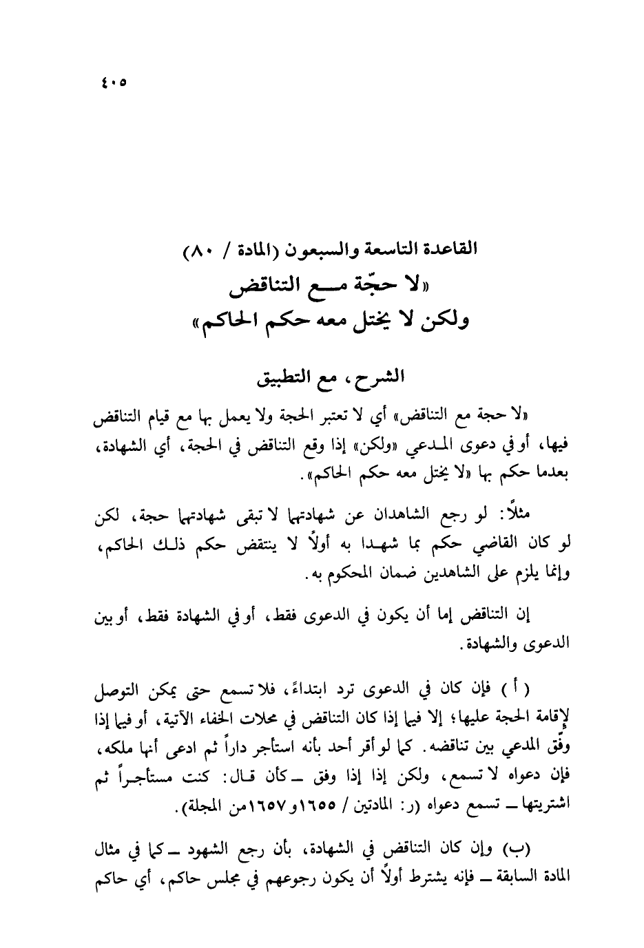(" لَا حجَّة مَعَ التَّنَاقُض وَلَكِن لَا يخْتل مَعَه حكم الْحَاكِم ")