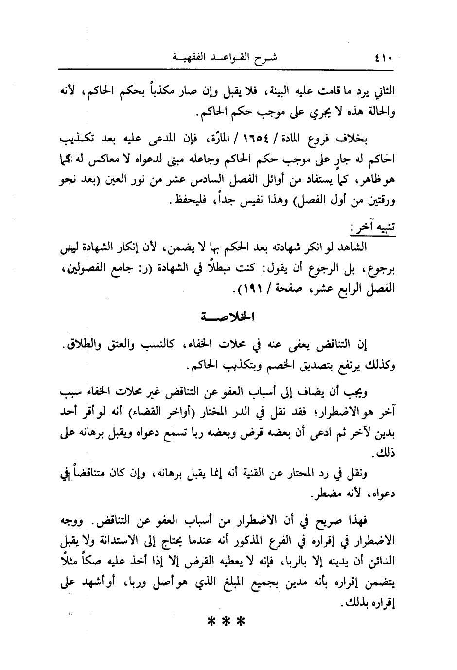 بِخِلَاف فروع الْمَادَّة / ١٦٥٤ / الْمَارَّة، فَإِن الْمُدعى عَلَيْهِ بعد تَكْذِيب الْحَاكِم لَهُ جارٍ على مُوجب حكم الْحَاكِم وجاعله مبْنى لدعواه لَا معاكس لَهُ كَمَا هُوَ ظَاهر، كَمَا يُسْتَفَاد من أَوَائِل الْفَصْل السَّادِس عشر من نور الْعين (بعد نَحْو ورقتين من أول الْفَصْل) وَهَذَا نَفِيس جدا، فَلْيحْفَظ.