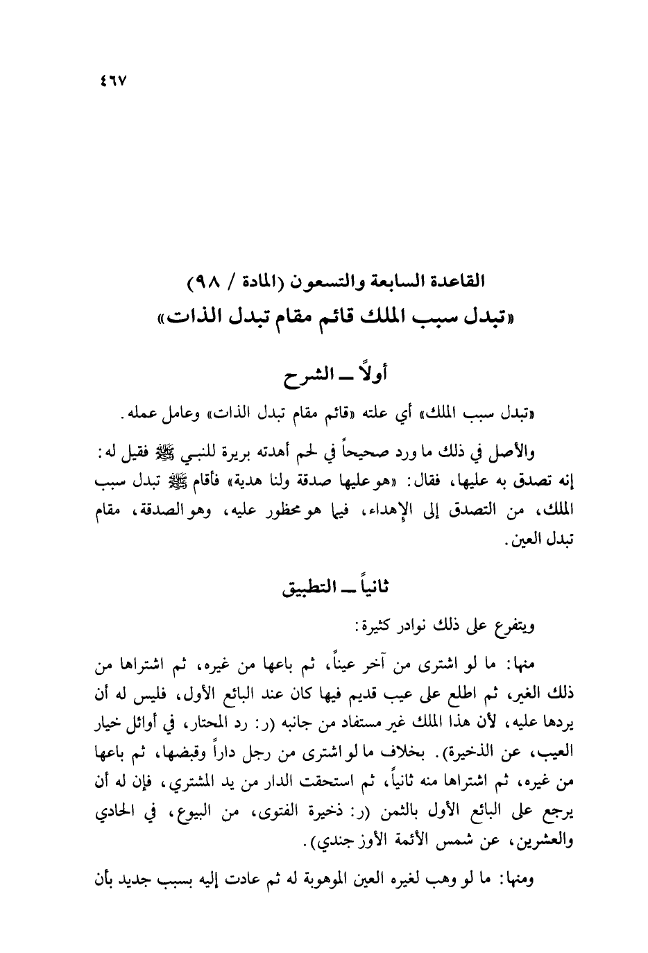 (الْقَاعِدَة السَّابِعَة وَالتِّسْعُونَ (الْمَادَّة / ٩٨))