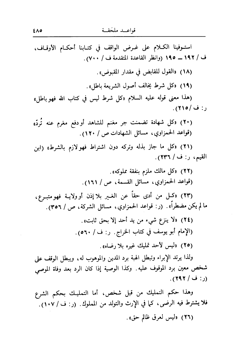 (٢١) " كل مَا جَازَ بذله وَتَركه دون اشْتِرَاط فَهُوَ لَازم بِالشّرطِ " (ابْن الْقيم، ر: ف / ٢٣٦) .