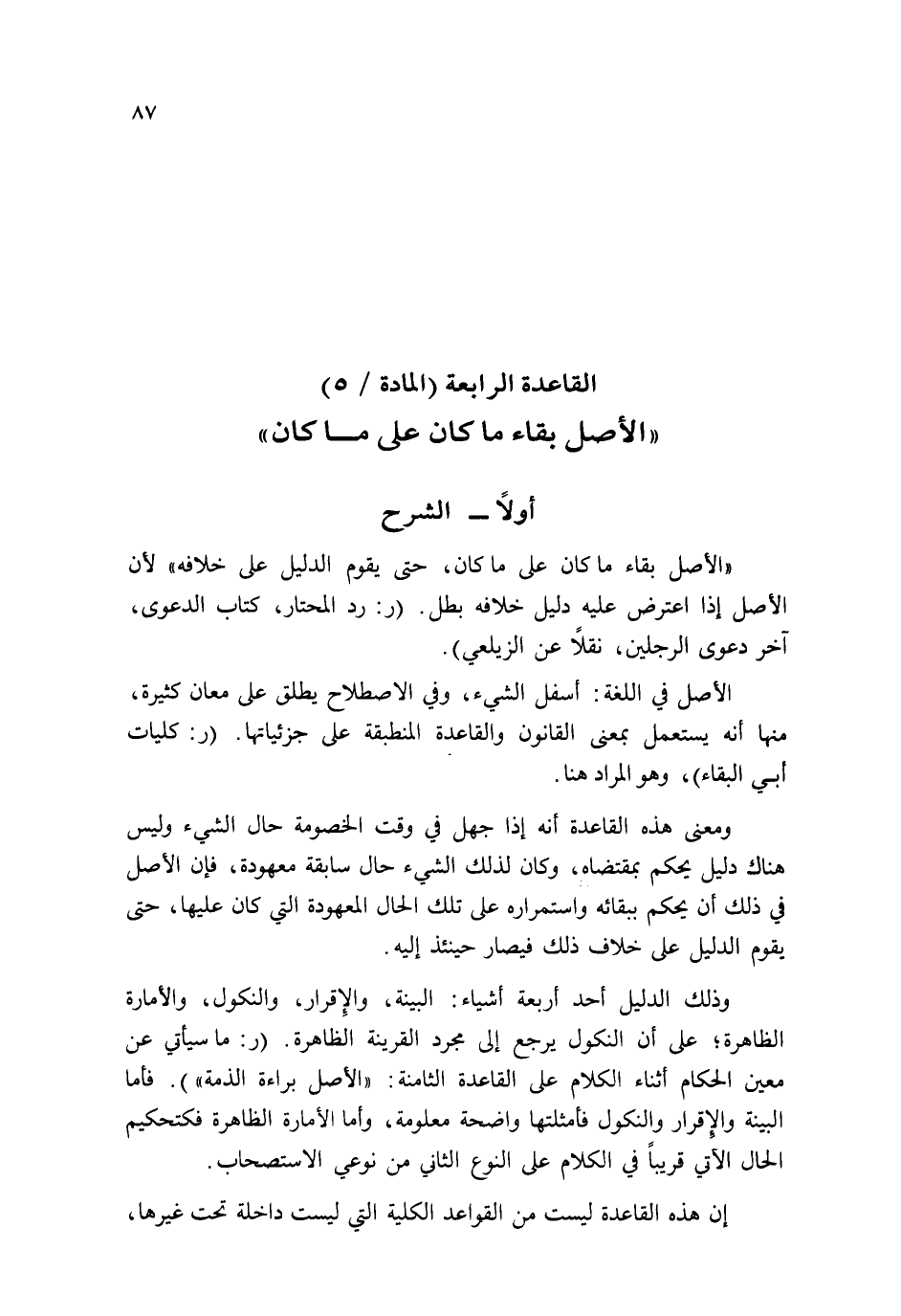 (" الأَصْل بَقَاء مَا كَانَ على مَا كَانَ ")