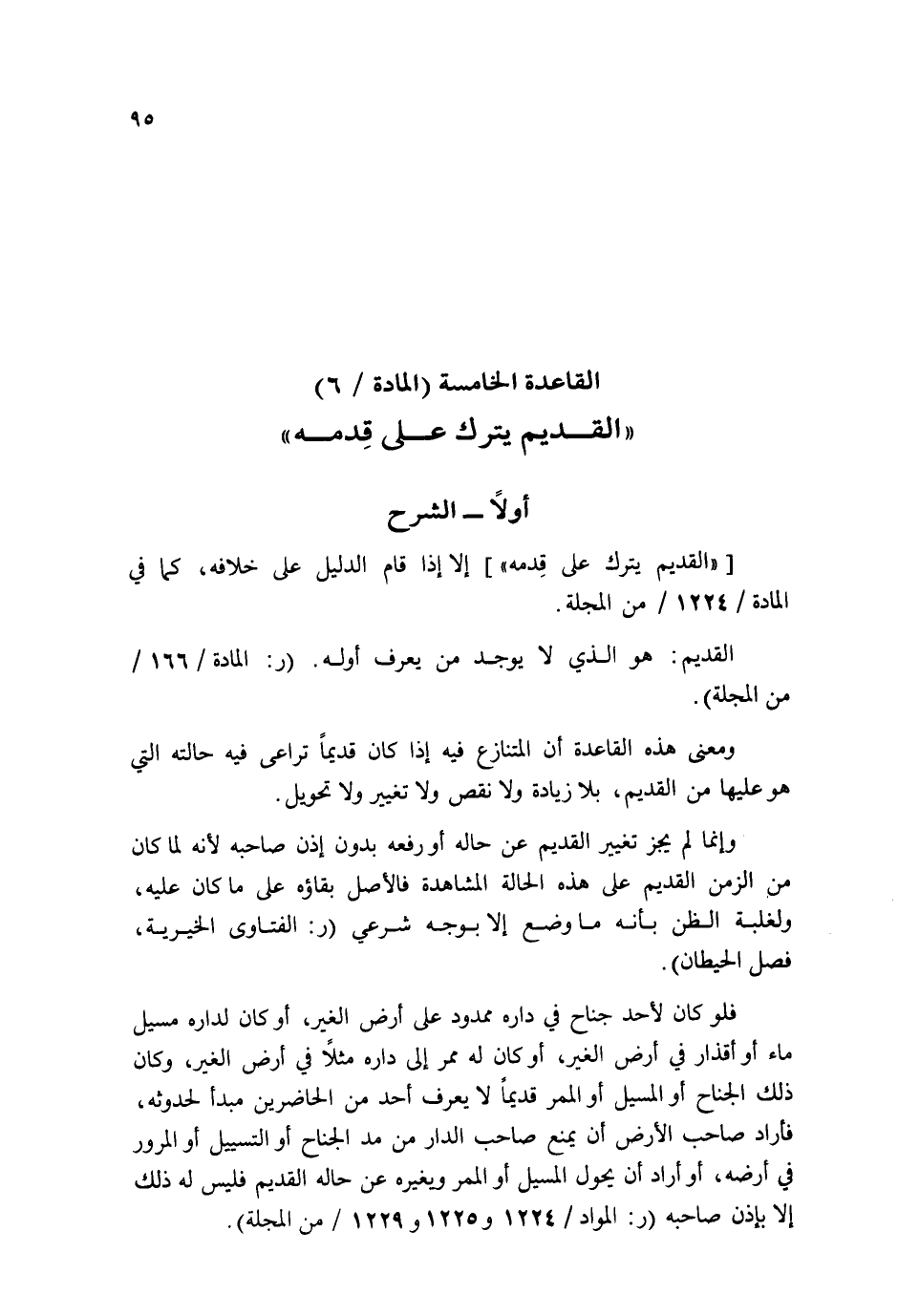 [" الْقَدِيم يتْرك على قدمه "] إِلَّا إِذا قَامَ الدَّلِيل على خِلَافه، كَمَا فِي الْمَادَّة / ١٢٢٤ / من الْمجلة.