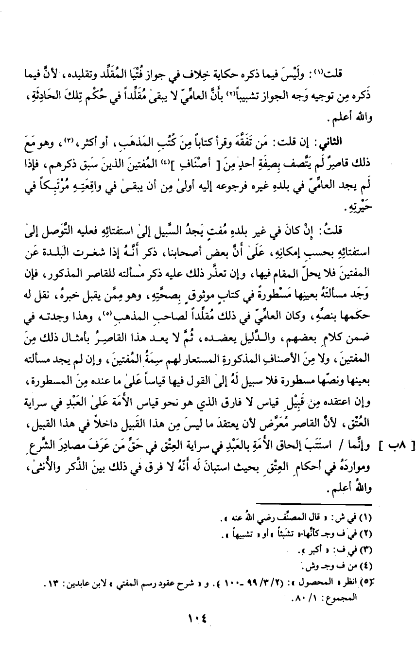٥ انظر "المحصول": "٢/ ٣/ ٩٩-١٠٠", و"شرح عقود رسم المفتي" لابن عابدين: ١٣, المجموع: ١/ ٨٠.