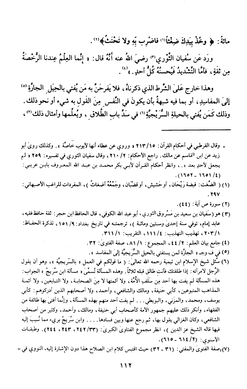 ورد عن سفيان الثوري٣ رضي الله عنه أنه قال: "إنما العلم عندنا الرخصة من ثقة، فأما التشديد فيحسنه كل أحد"٤.
