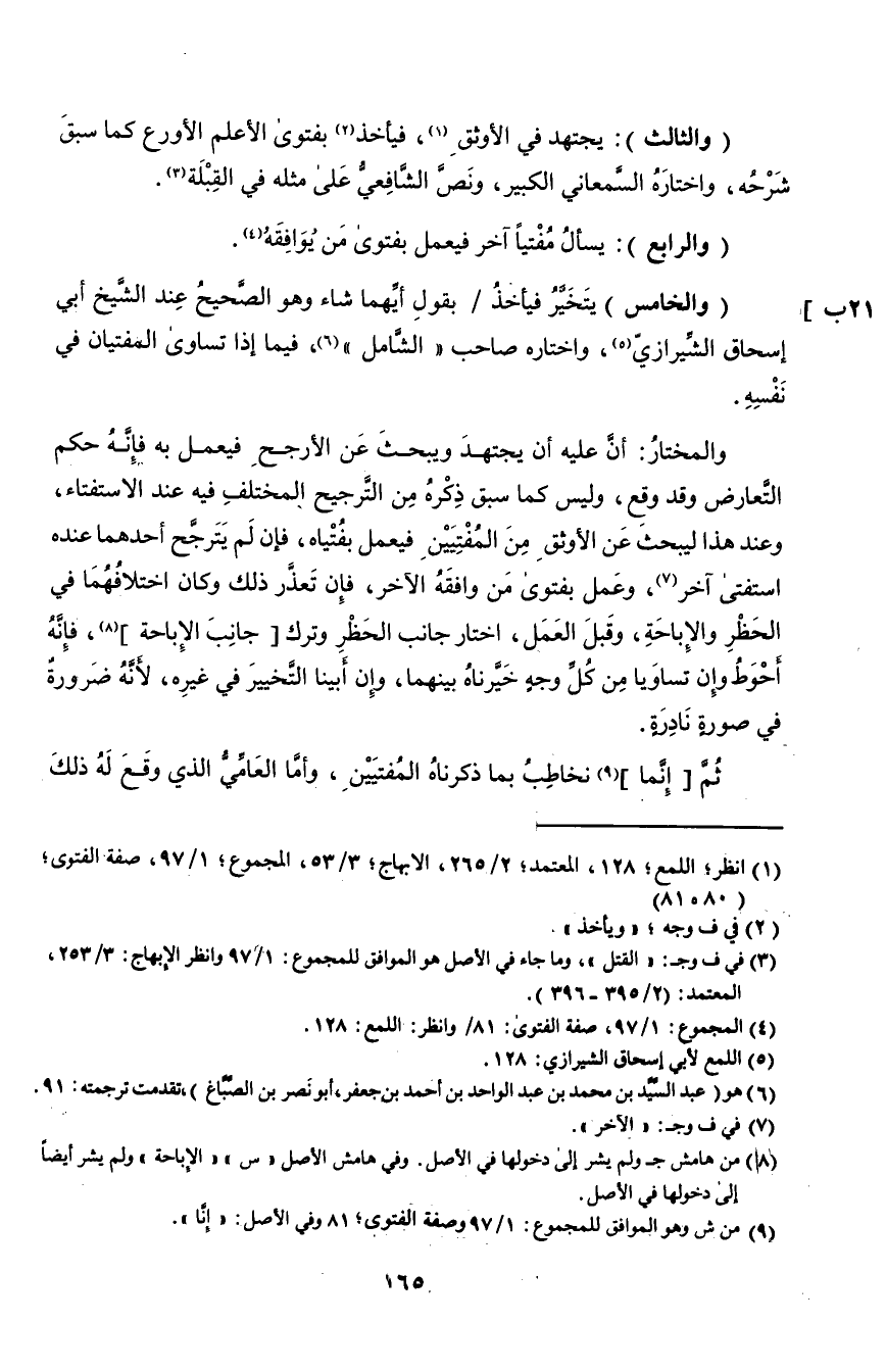 ١ انظر اللمع: ١٢٨، المعتمد: ٢/ ٢٦٥، الإبهاج: ٣/ ٥٣، المجموع: ١/ ٩٧، صفة الفتوى؛ "٨٠-٨١".