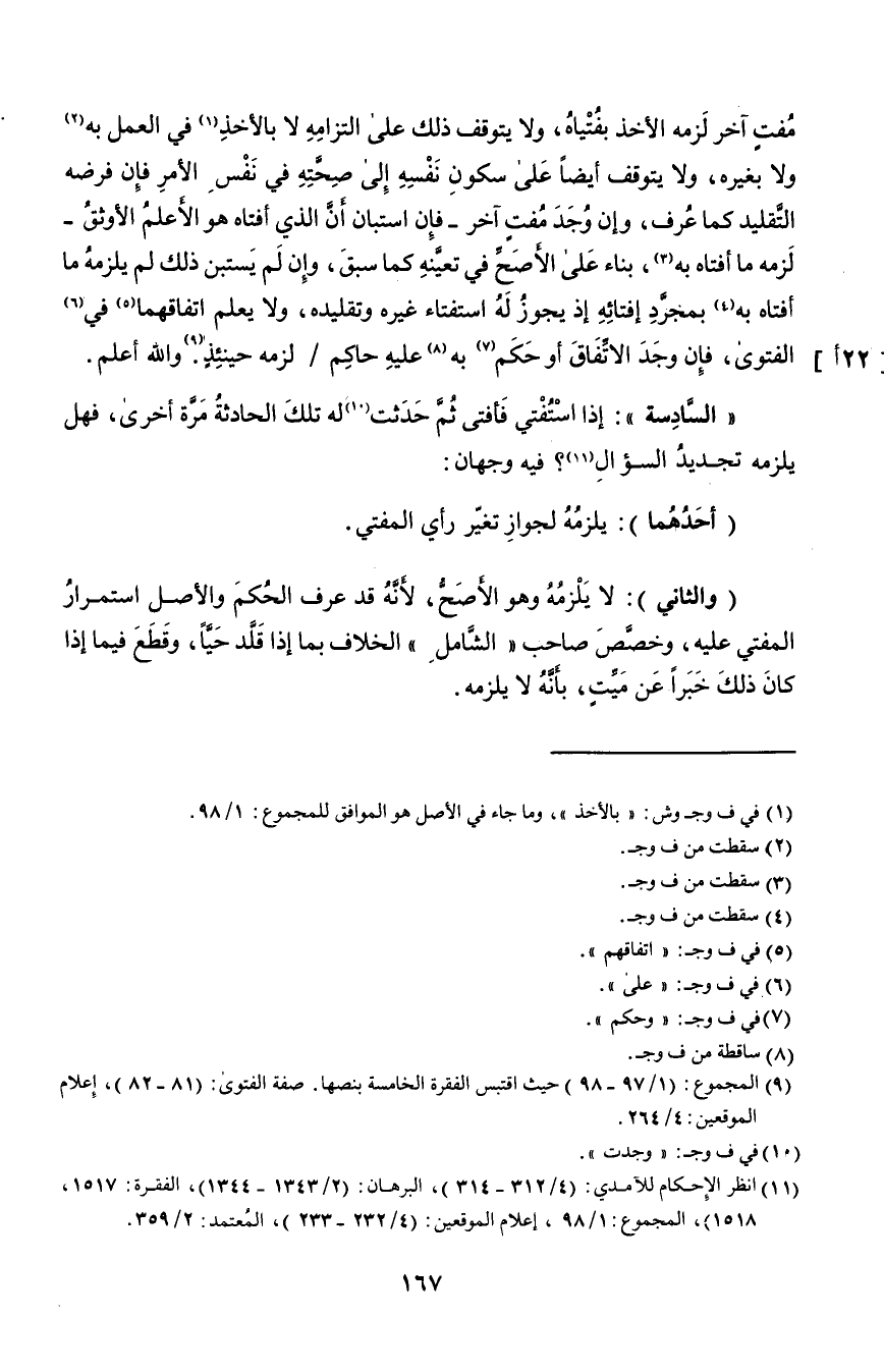 ٩ المجموع: "١/ ٩٧-٩٨" حيث اقتبس الفقرة الخامسة بنصها، صفة الفتوى: "٨١-٨٢"، إعلام الموقعين: ٤/ ٢٦٤.