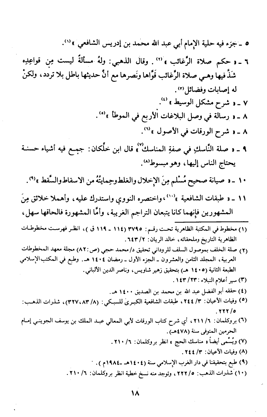 ٥- جزء فيه حلية الإمام أبي عبد الله محمد بن إدريس الشافعي١.