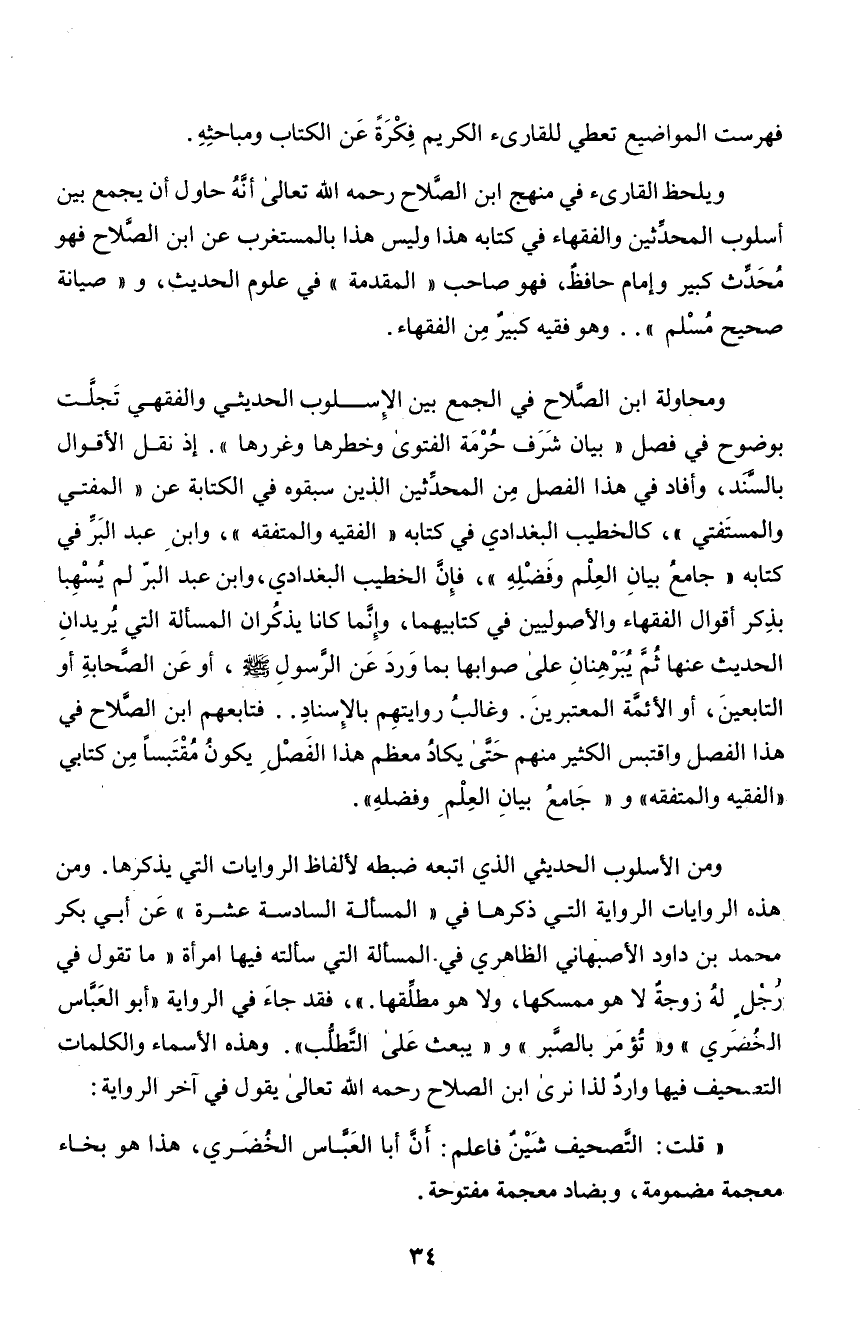 ويلحظ القارئ في منهج ابن الصلاح رحمه الله تعالى أنه حاول أن يجمع بين أسلوب المحدثين والفقهاء في كتابه هذا وليس هذا بالمستغرب عن ابن الصلاح فهو محدث كبير وإمام حافظ، فهو صاحب "المقدمة" في علوم الحديث، و"صيانة صحيح مسلم" ... وهو فقيه كبير من الفقهاء.