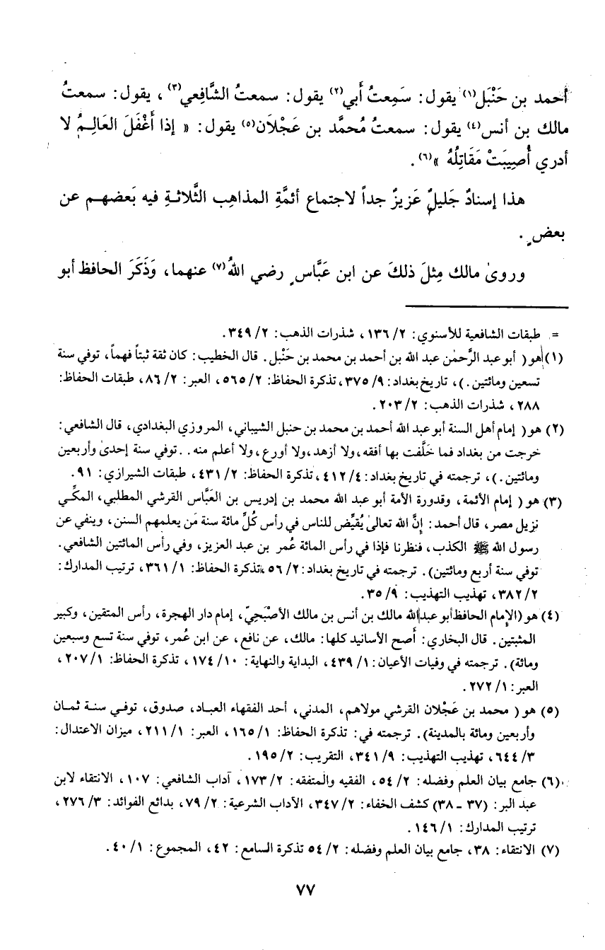 هذا إسناد جليل عزيز جدًّا لاجتماع أئمة المذاهب الثلاثة فيه بعضهم عن بعض.