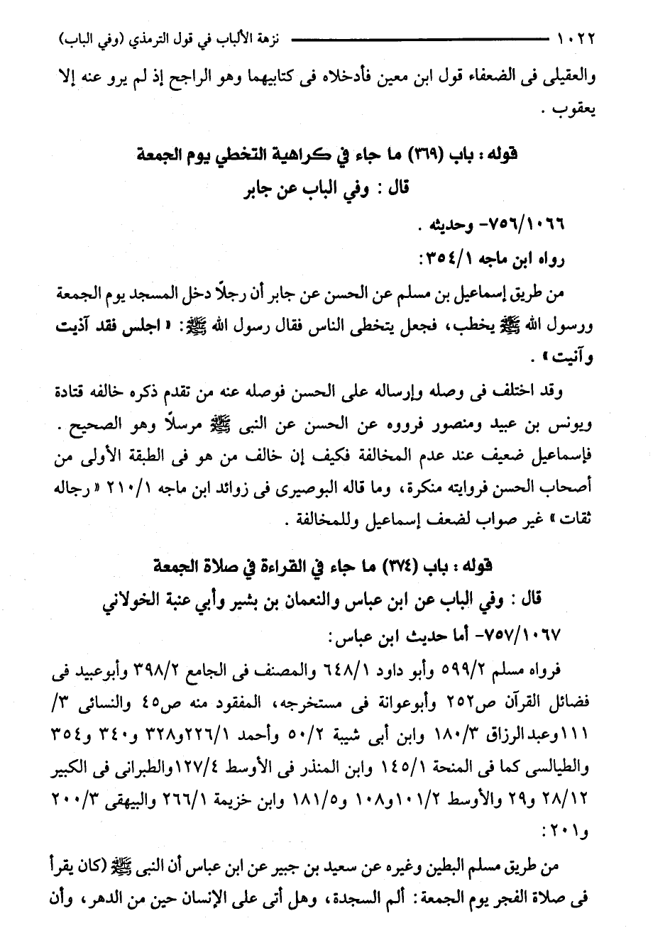 قوله: باب (374) ما جاء في القراءة في صلاة الجمعة