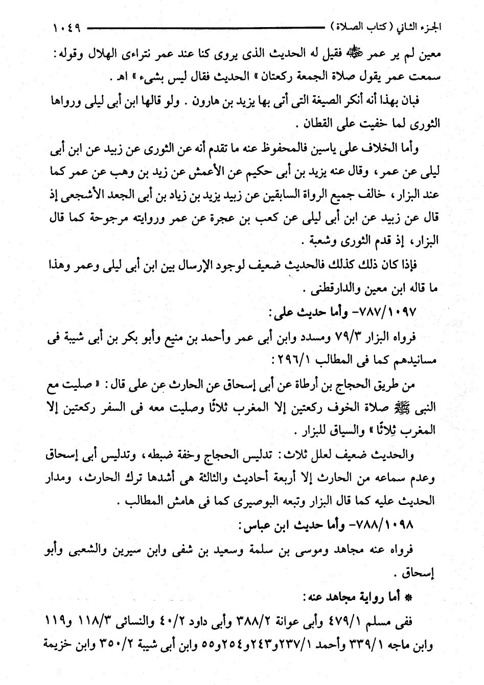 معين لم ير عمر - رضي الله عنه - فقيل له الحديث الذي يروى كنا عند عمر نتراءى الهلال وقوله: سمعت عمر يقول صلاة الجمعة ركعتان" الحديث فقال ليس بشيء" اهـ. فبان بهذا أنه أنكر الصيغة التى أتى بها يزيد بن هارون. ولو قالها ابن أبى ليلى ورواها الثورى لما خفيت على القطان.