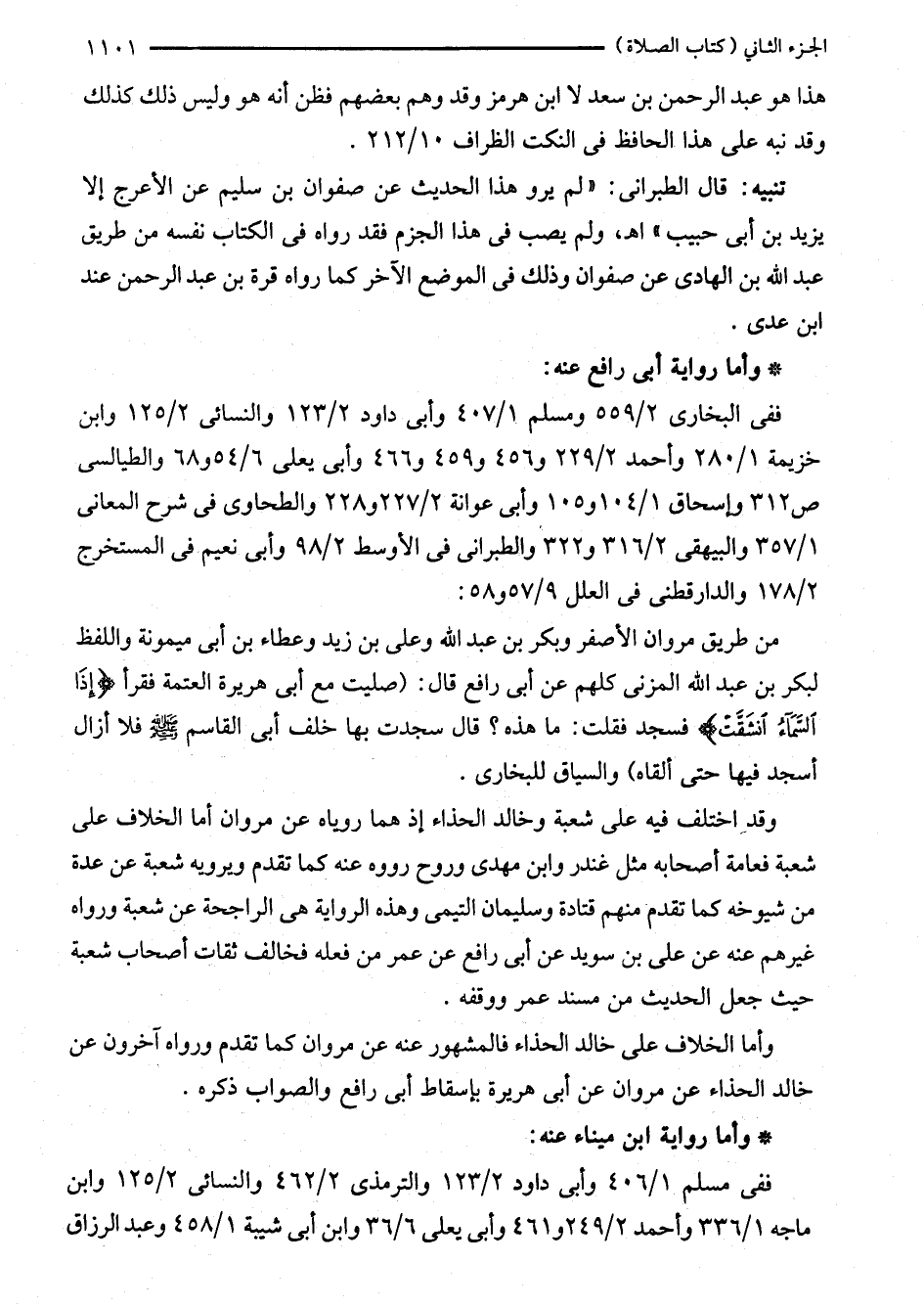 وأما الخلاف على خالد الحذاء فالمشهور عنه عن مروان كما تقدم ورواه آخرون عن خالد الحذاء عن مروان عن أبي هريرة بإسقاط أبي رافع والصواب ذكره.