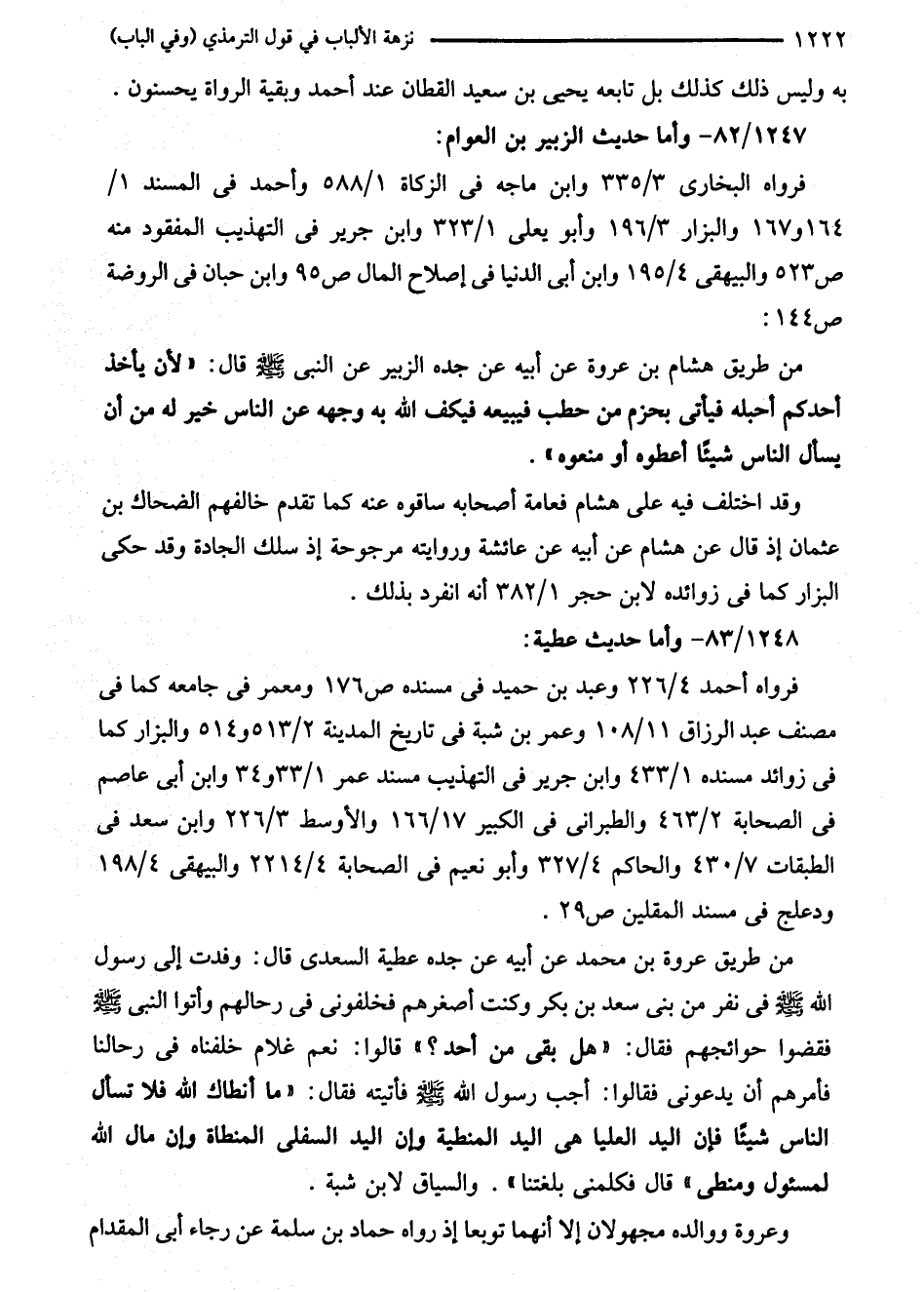 به وليس ذلك كذلك بل تابعه يحيى بن سعيد القطان عند أحمد وبقية الرواة يحسنون. 1247/ 82 - وأما حديث الزبير بن العوام: