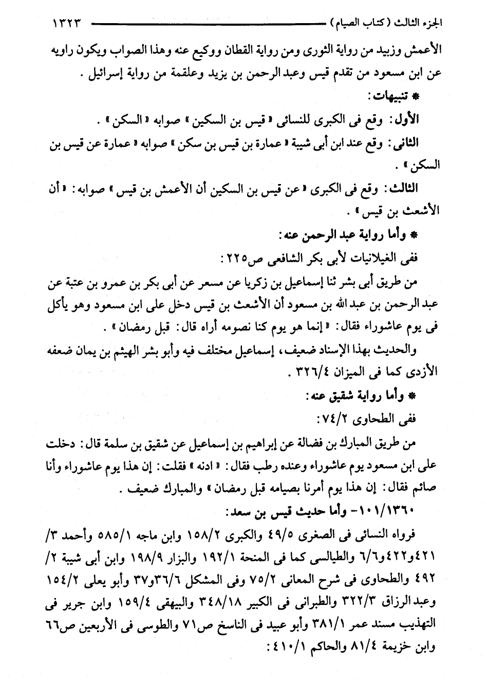 الأعمش وزبيد من رواية الثورى ومن رواية القطان ووكيع عنه وهذا الصواب ويكون راويه عن ابن مسعود من تقدم قيس وعبد الرحمن بن يزيد وعلقمة من رواية إسرائيل.