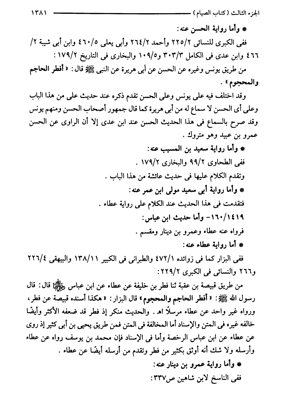 من طريق يونس وغيره عن الحسن عن أبى هريرة عن النبي - صلى الله عليه وسلم - قال: "أفطر الحاجم والمحجوم".