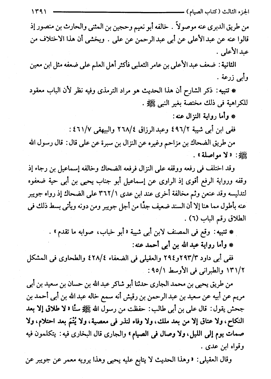 من طريق الدبرى عنه موصولًا. خالفه أبو نعيم وحجين بن المثنى والحارث بن منصور إذ قالوا عنه عن عبد الأعلى عن أبى عبد الرحمن عن على. ويخشى أن هذا الاختلاف من عبد الأعلى.