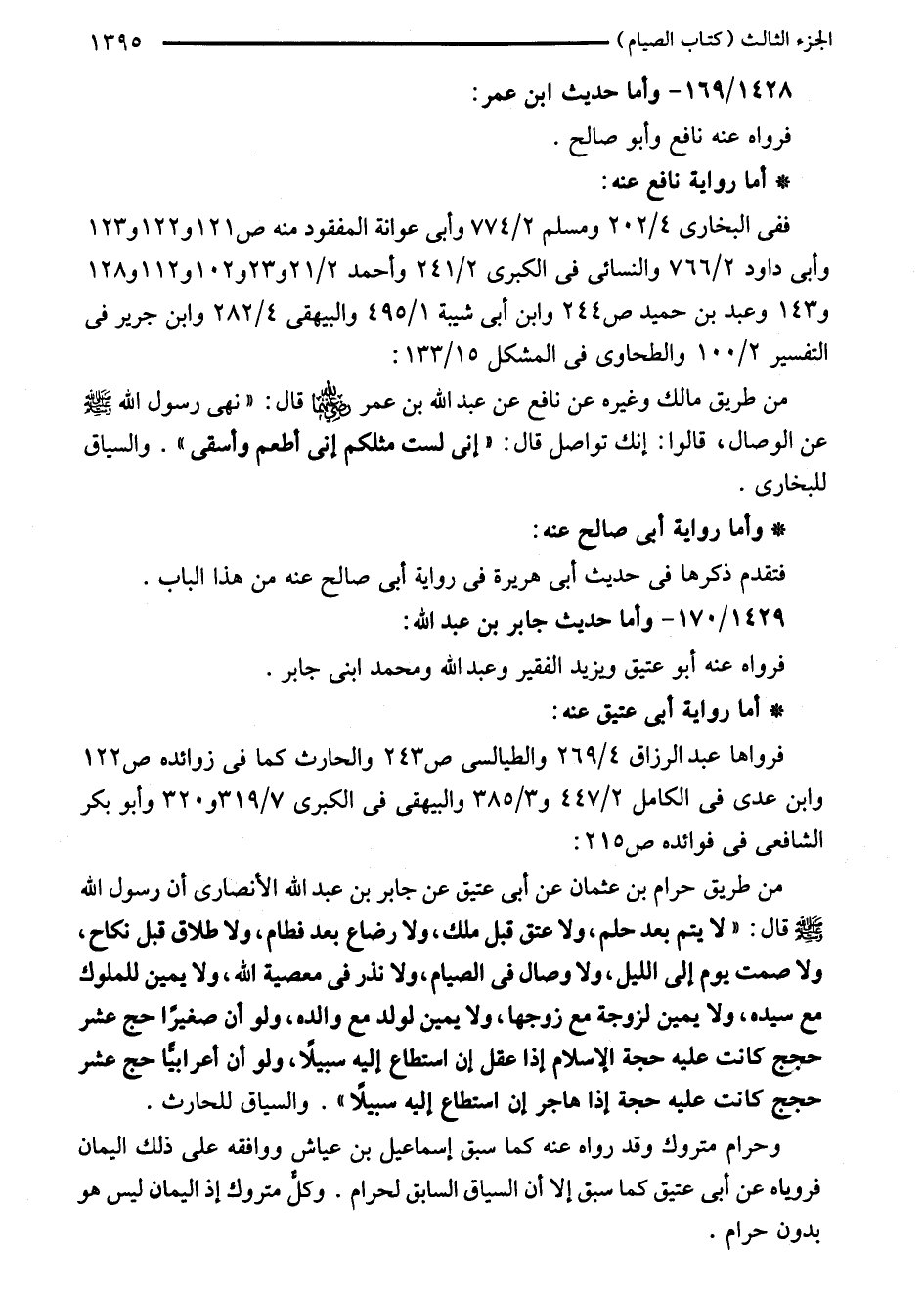 1428/ 169 - وأما حديث ابن عمر: