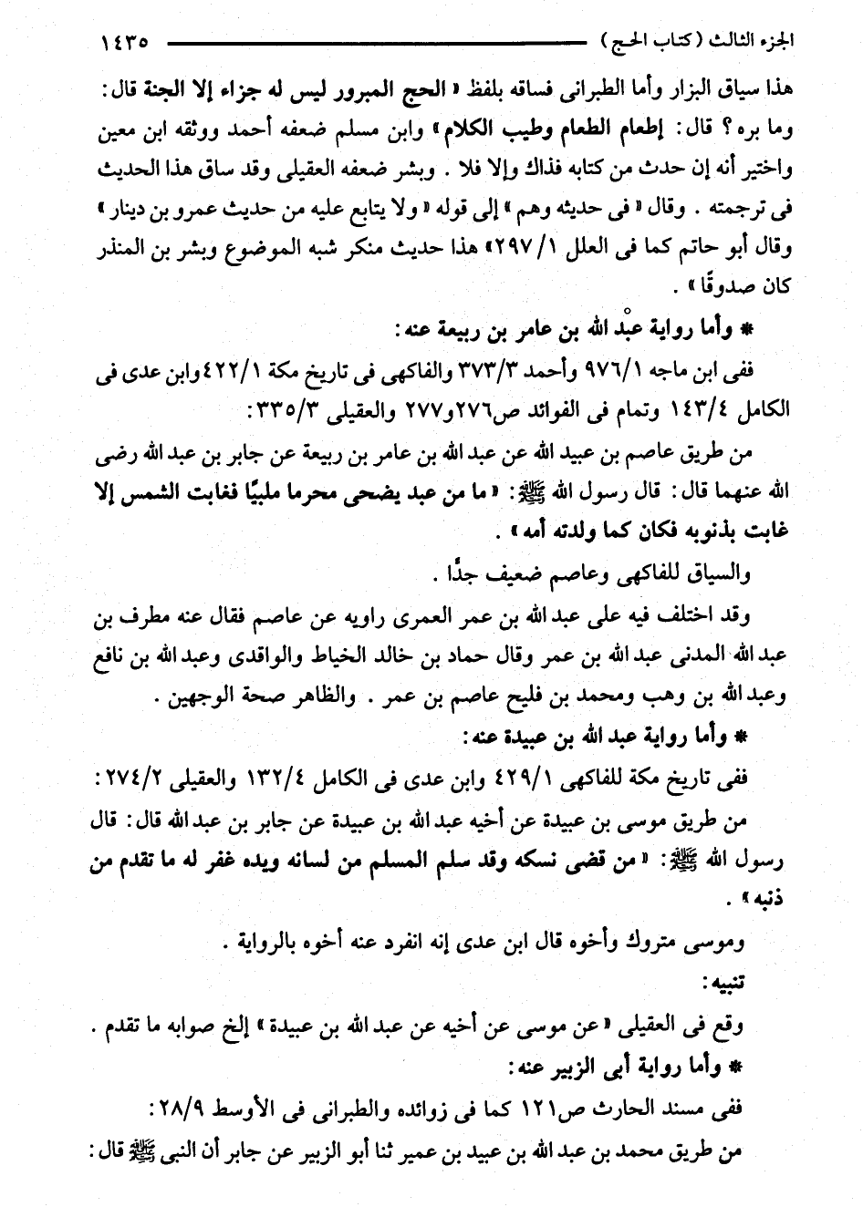 من طريق محمد بن عبد الله بن عبيد بن عمير ثنا أبو الزبير عن جابر أن النبي - صلى الله عليه وسلم - قال: