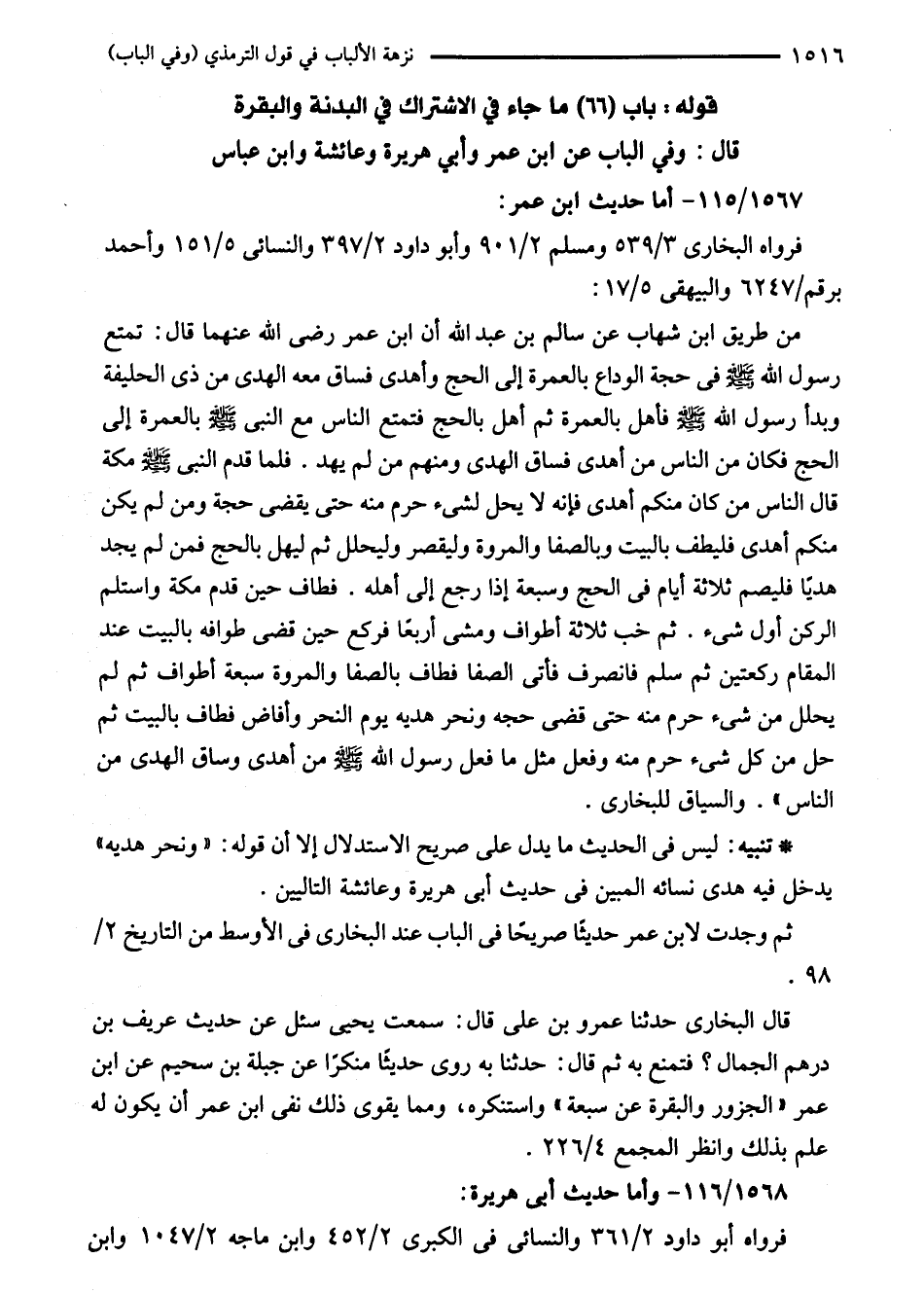 قوله: باب (66) ما جاء في الاشتراك في البدنة والبقرة