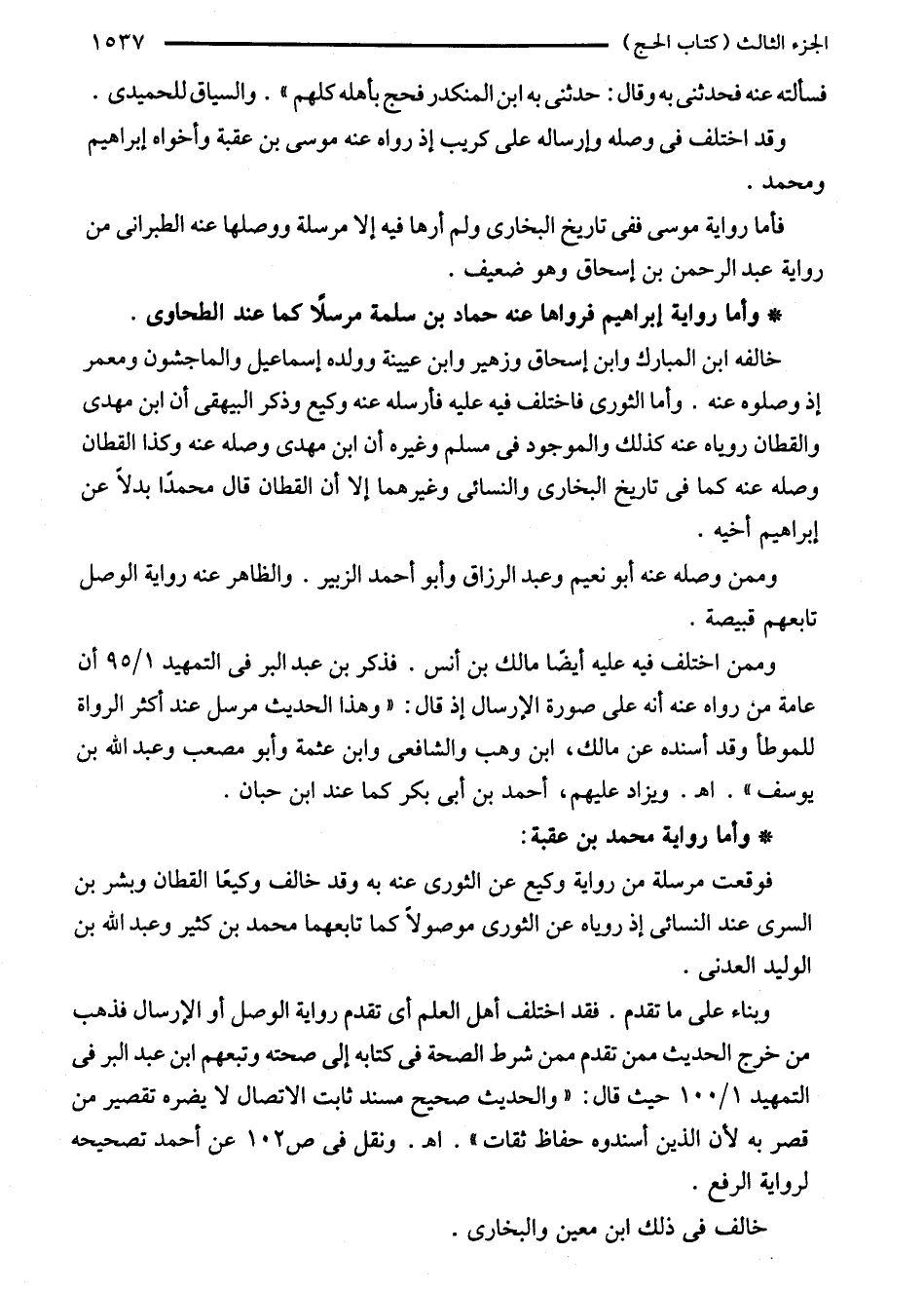 وقد اختلف في وصله وإرساله على كربب إذ رواه عنه موسى بن عقبة وأخواه إبراهيم ومحمد.
