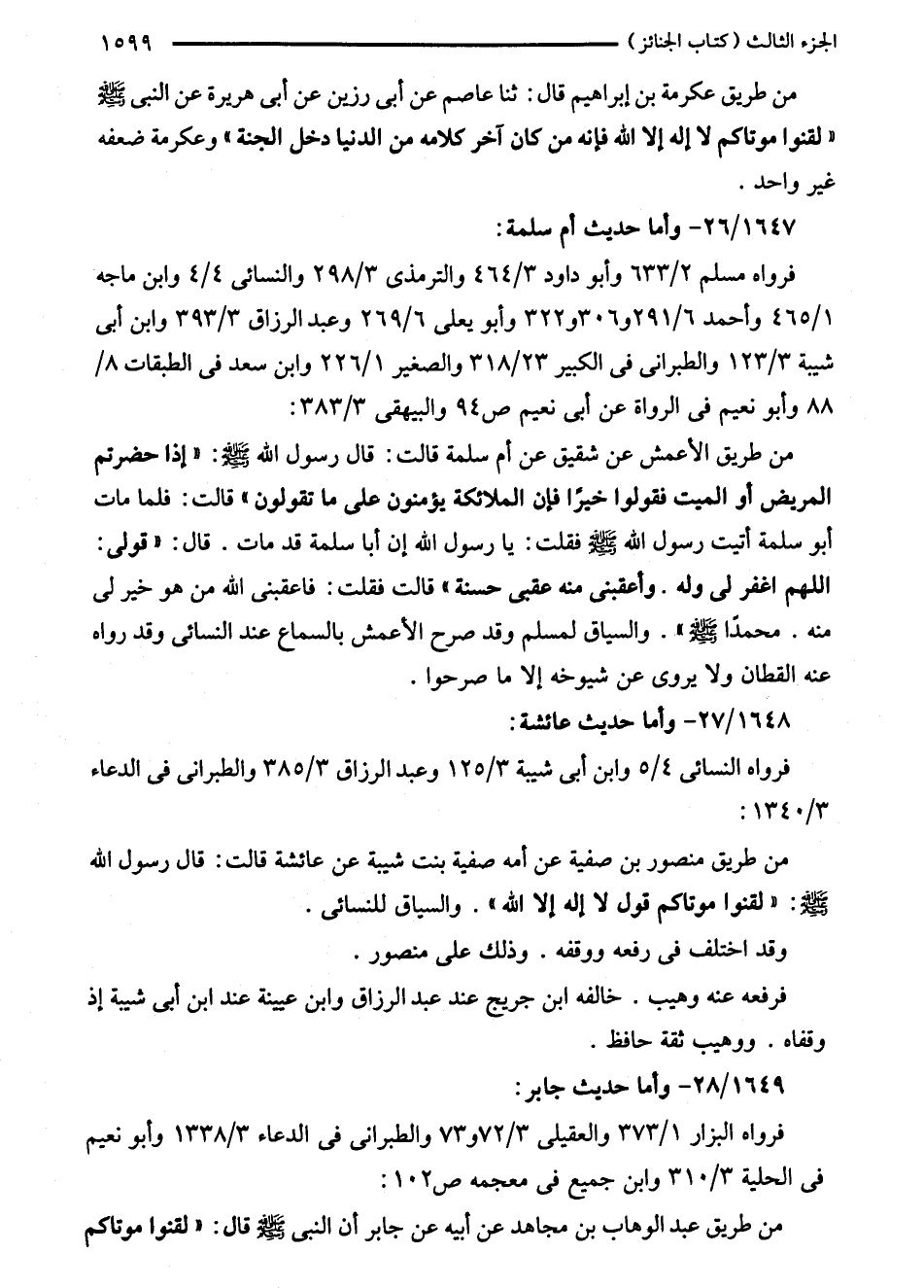 - صلى الله عليه وسلم -: "لقنوا موناكم قول لا اله إلا الله". والسياق للنسائي.