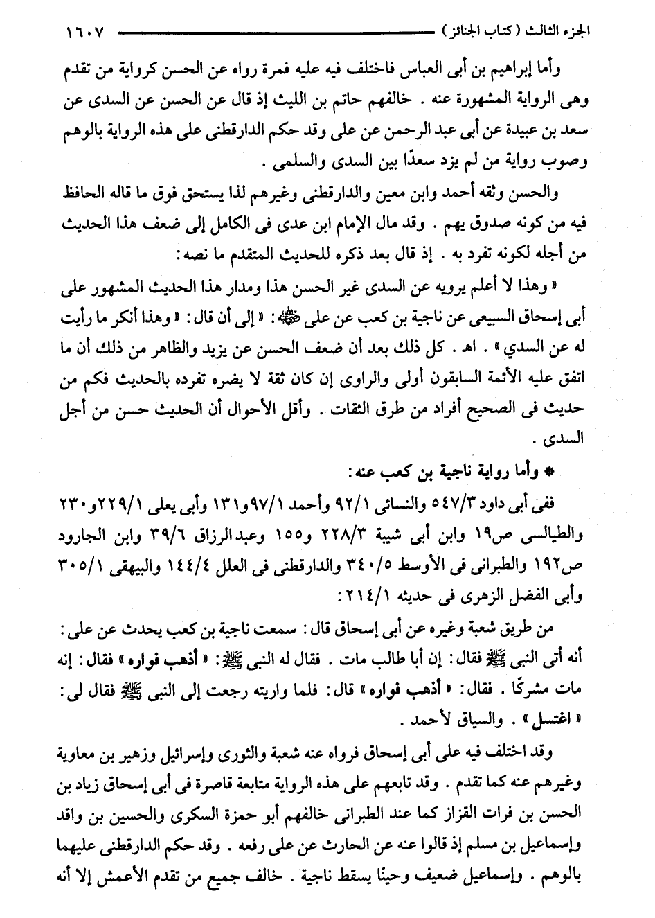 وأما إبراهيم بن أبى العباس فاختلف فيه عليه فمرة رواه عن الحسن كرواية من تقدم وهى الرواية المشهورة عنه. خالفهم حاتم بن الليث إذ قال عن الحسن عن السدى عن سعد بن عبيدة عن أبى عبد الرحمن عن على وقد حكم الدارقطني على هذه الرواية بالوهم وصوب رواية من لم يزد سعدًا بين السدى والسلمى.