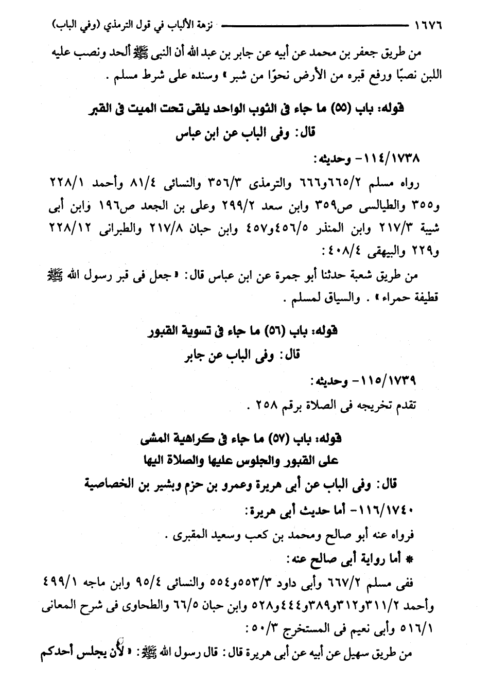 قوله: باب (57) ما جاء في كراهية المشى على القبور والجلوس عليها والصلاة إليها