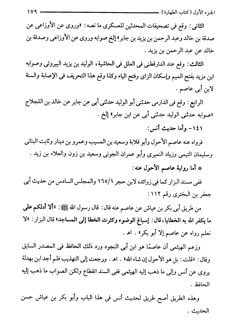 وزعم الهيثمى أن عاصمًا هو ابن أبى النجود ورد ذلك الحافظ في المصدر السابق وقال: "قلت: بل هو الأحول إن شاء الله". اهـ. ورجعت إلى التهذيب فلم أجد ابن بهدلة يروى عن أنس وإلى ما ذهب إليه الهيثمى ففي السند انقطاع ولكن الصواب ما ذهب إليه الحافظ.