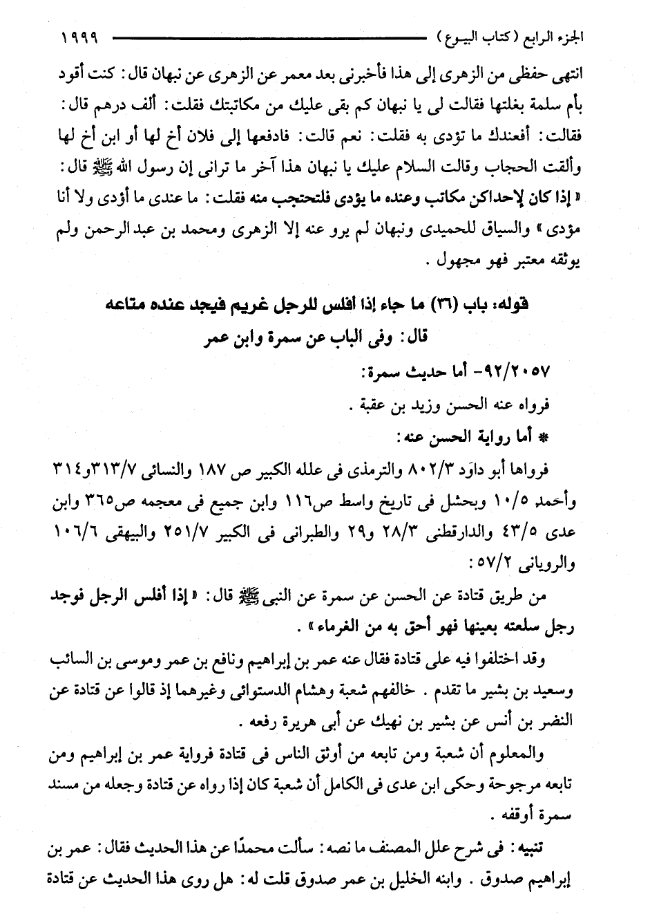 قوله: باب (36) ما جاء إذا أفلس للرجل غريم فيجد عنده متاعه