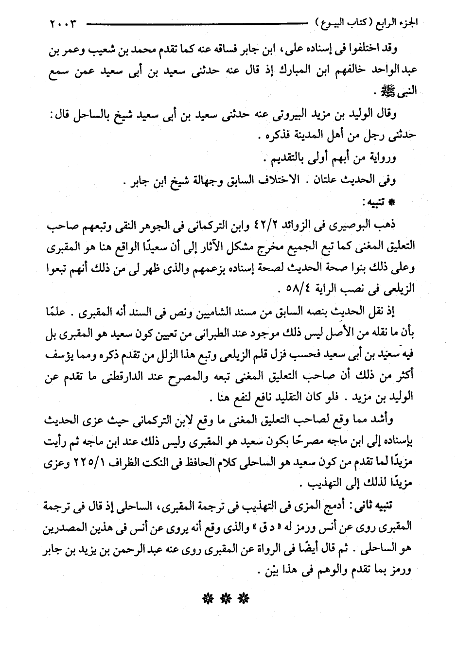 إذ نقل الحديث بنصه السابق من مسند الشاميين ونص في السند أنه المقبرى. علمًا بأن ما نقله من الأصل ليس ذلك موجود عند الطبراني من تعيين كون سعيد هو المقبرى بل فيه سعيد بن أبى سعيد فحسب فزل قلم الزيلعى وتبع هذا الزلل من تقدم ذكره ومما يؤسف أكثر من ذلك اْن صاحب التعليق المغنى تبعه والمصرح عند الدارقطني ما تقدم عن الوليد بن مزيد. فلو كان التقليد نافع لنفع هنا.