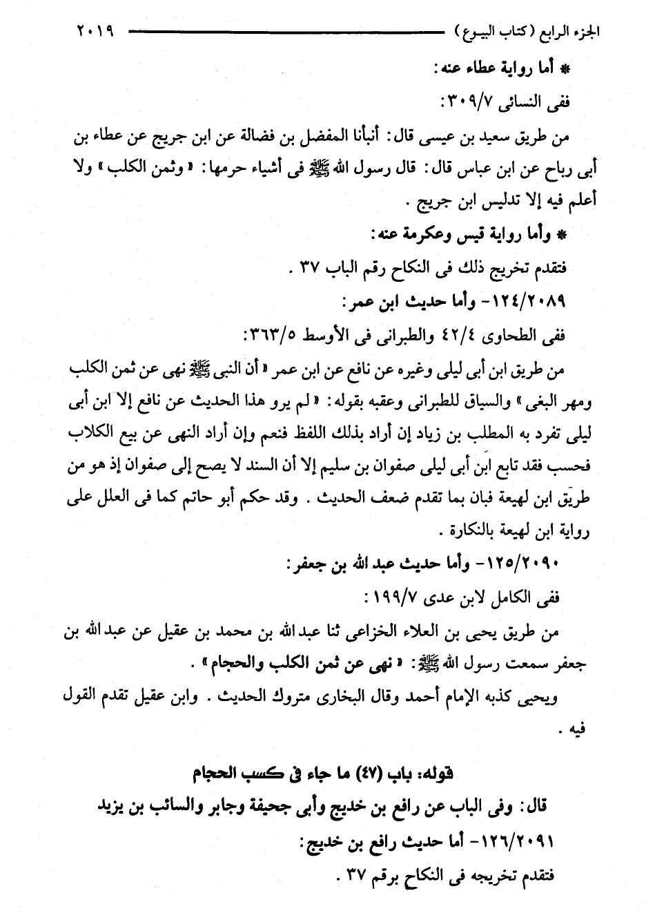 قال: وفى الباب عن رافع بن خديج وأبى جحيفة وجابر والسائب بن يزيد